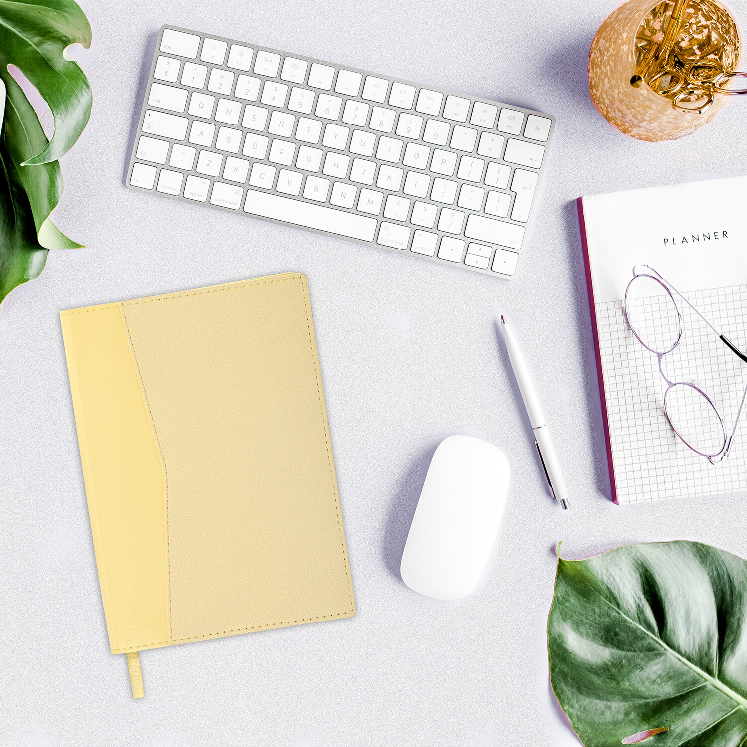 Ежедневник недатированный В6 130х185 мм BRAUBERG «Glam», под кожу, 160 л., желтый, 116222