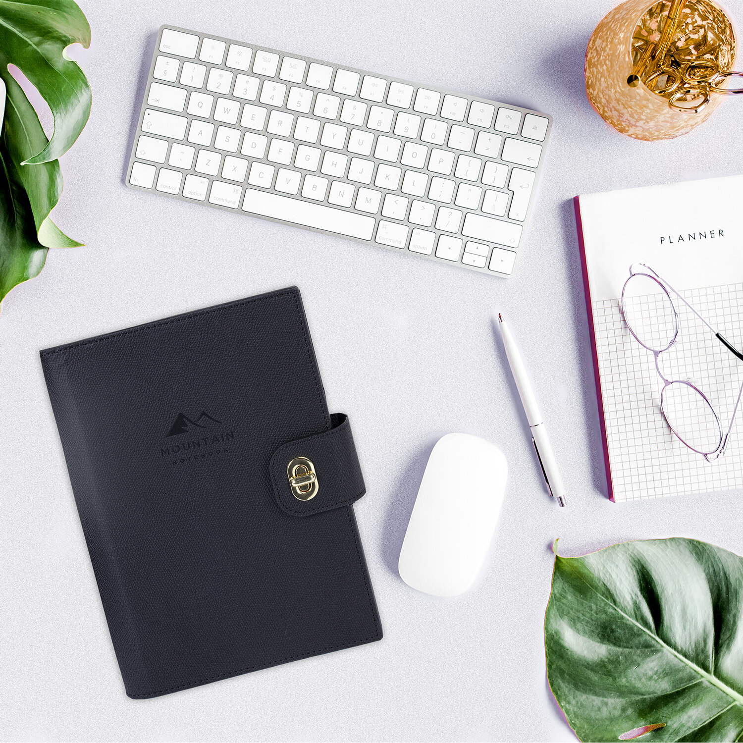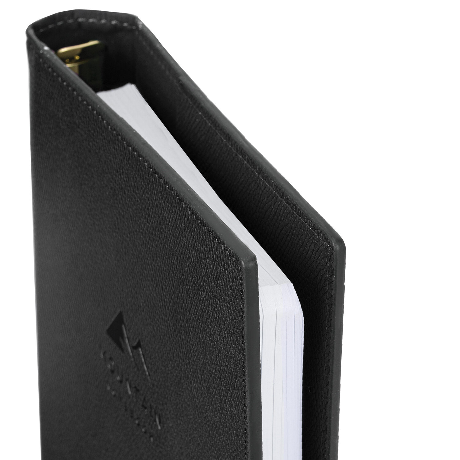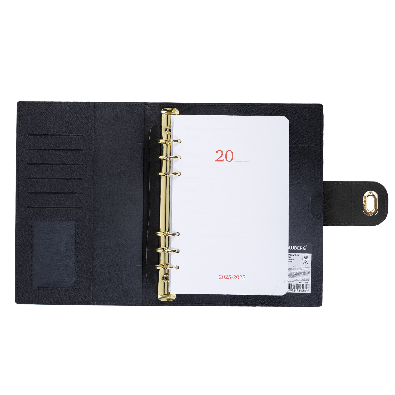 Твердая обложка с кольцевым механизмом оснащена дополнительными карманами для хранения бумаг, карточек и мелочей. Съемный внутренний блок включает 160 листов белой бумаги плотностью 70 г/м2. Благодаря формату B5 (167х240мм) ежедневник удобно использовать как в офисе, так и на выездных деловых встречах. Ежедневник снабжен стильной застежкой с поворотным механизмом, благодаря чему он не откроется в сумочке или портфеле, и листы не помнутся. Дополнением является держатель для ручки, что позволяет держать при себе все самое необходимое. Ежедневник содержит обширный справочный материал, а также 7 страниц для записей и заметок. Уголки – закругленные.