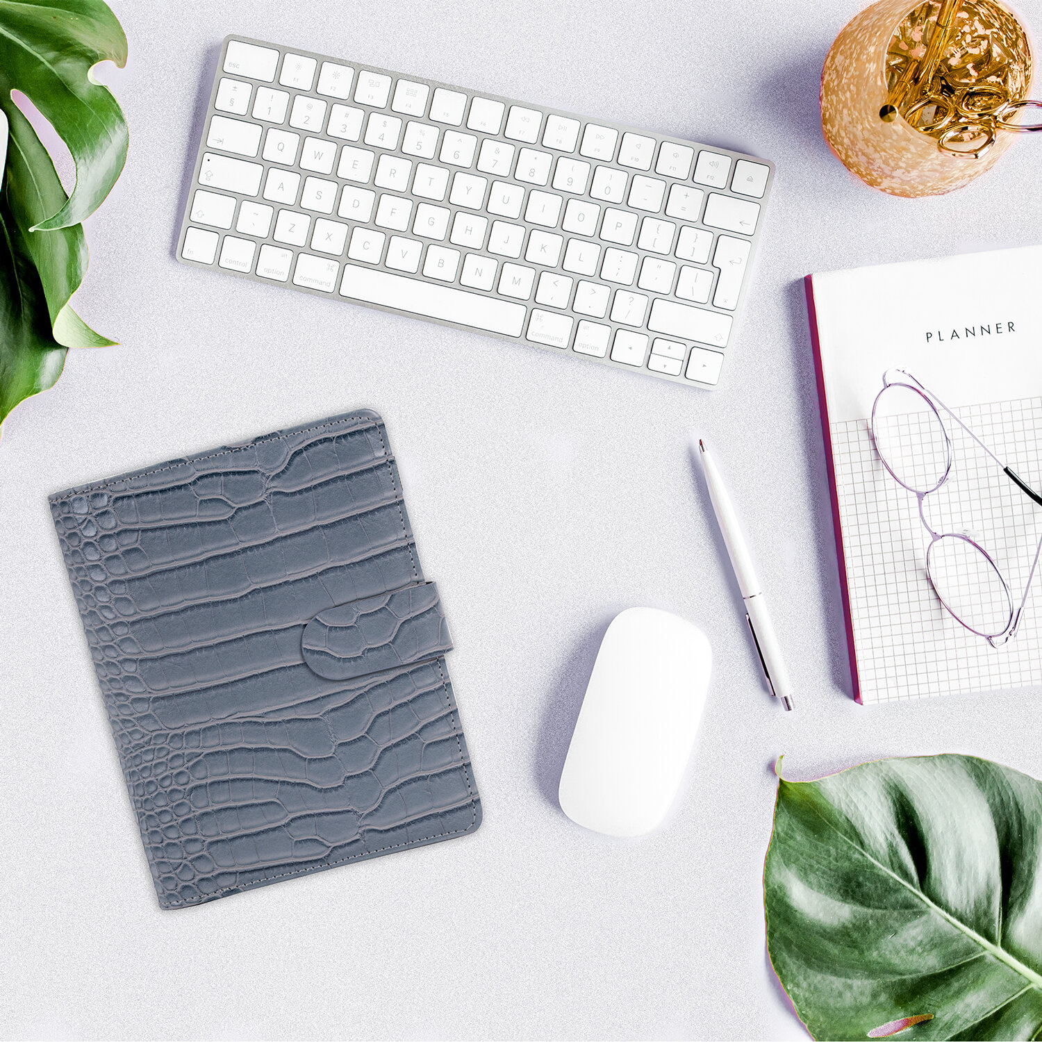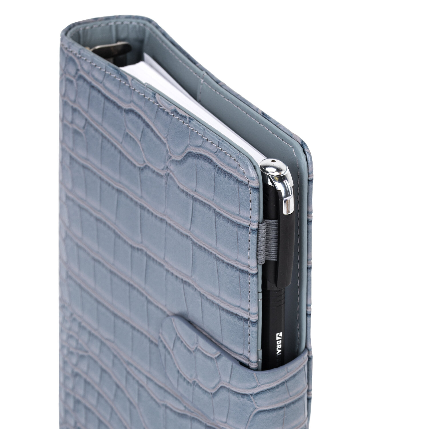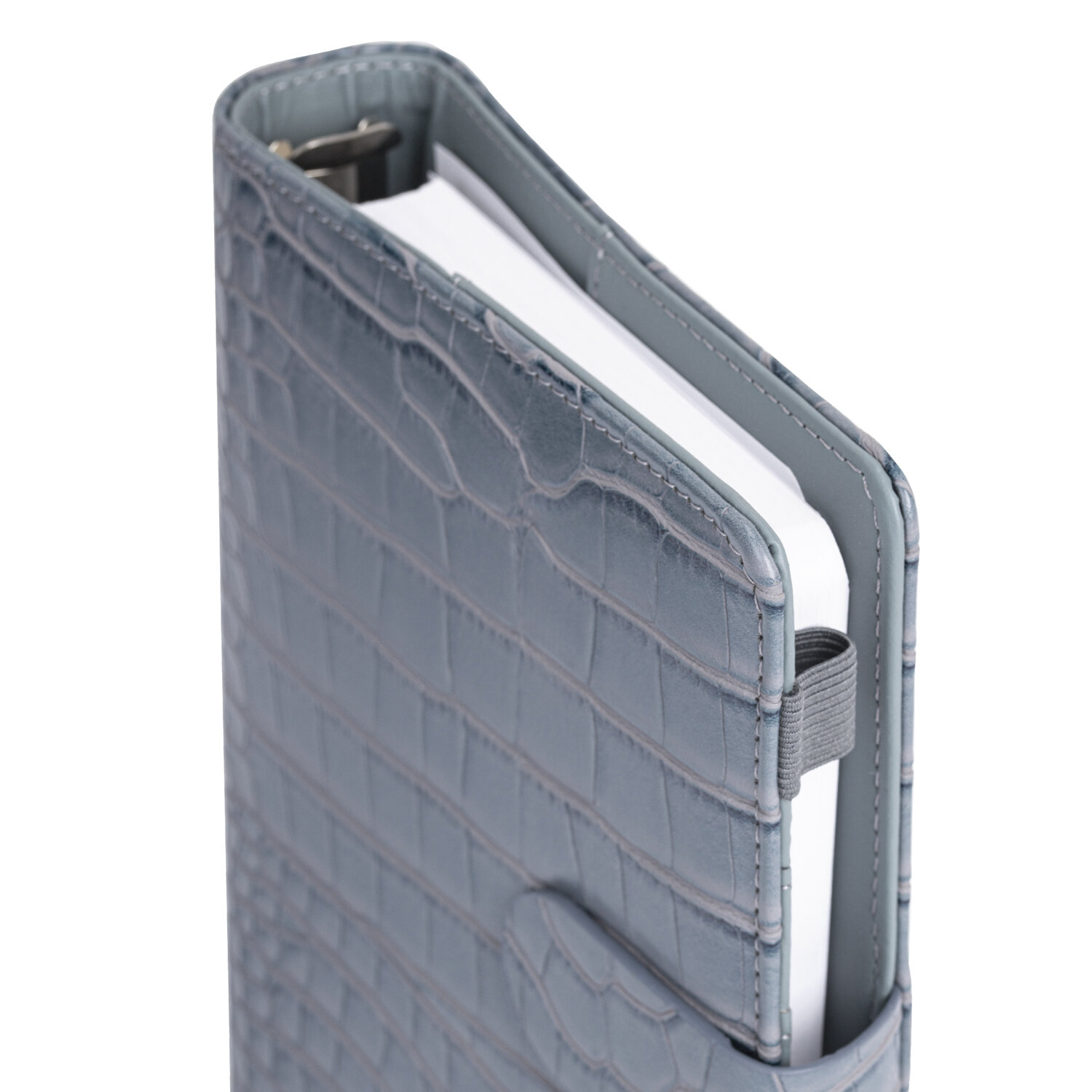 Твердая обложка с кольцевым механизмом оснащена дополнительными карманами для хранения бумаг, карточек и мелочей. Съемный внутренний блок включает 160 листов белой бумаги плотностью 70 г/м2. Благодаря формату B6+ (150×190 мм) ежедневник удобно использовать как в офисе, так и на выездных деловых встречах. Ежедневник снабжен стильной магнитной застежкой, благодаря чему он не откроется в сумочке или портфеле, и листы не помнутся. Дополнением является держатель для ручки, что позволяет держать при себе все самое необходимое. Ежедневник содержит обширный справочный материал, а также 7 страниц для записей и заметок. Уголки – закругленные.
