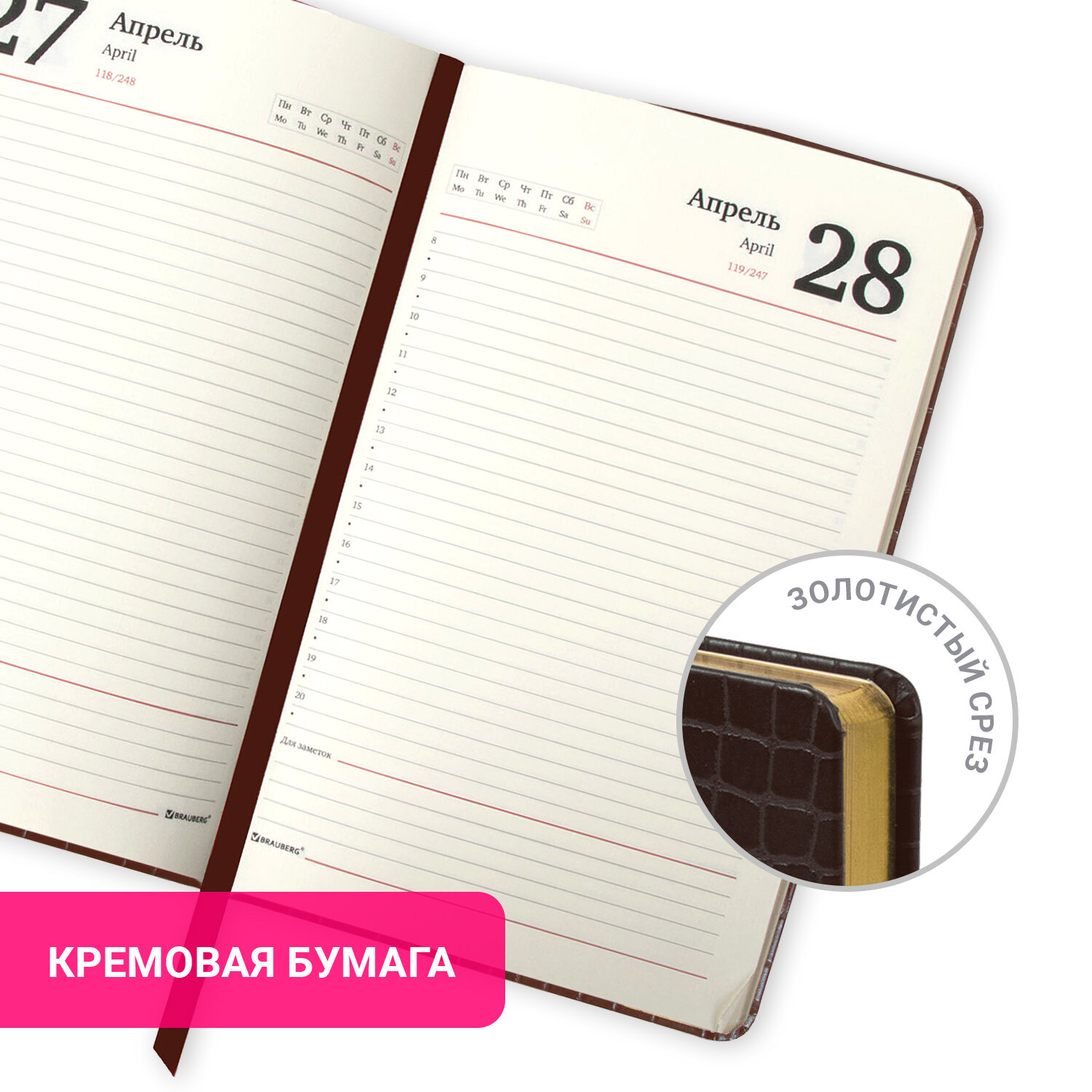 Ежедневник полудатированный А5 (138х213 мм) BRAUBERG «Alligator», под кожу, 192 л., коричневый, 124986