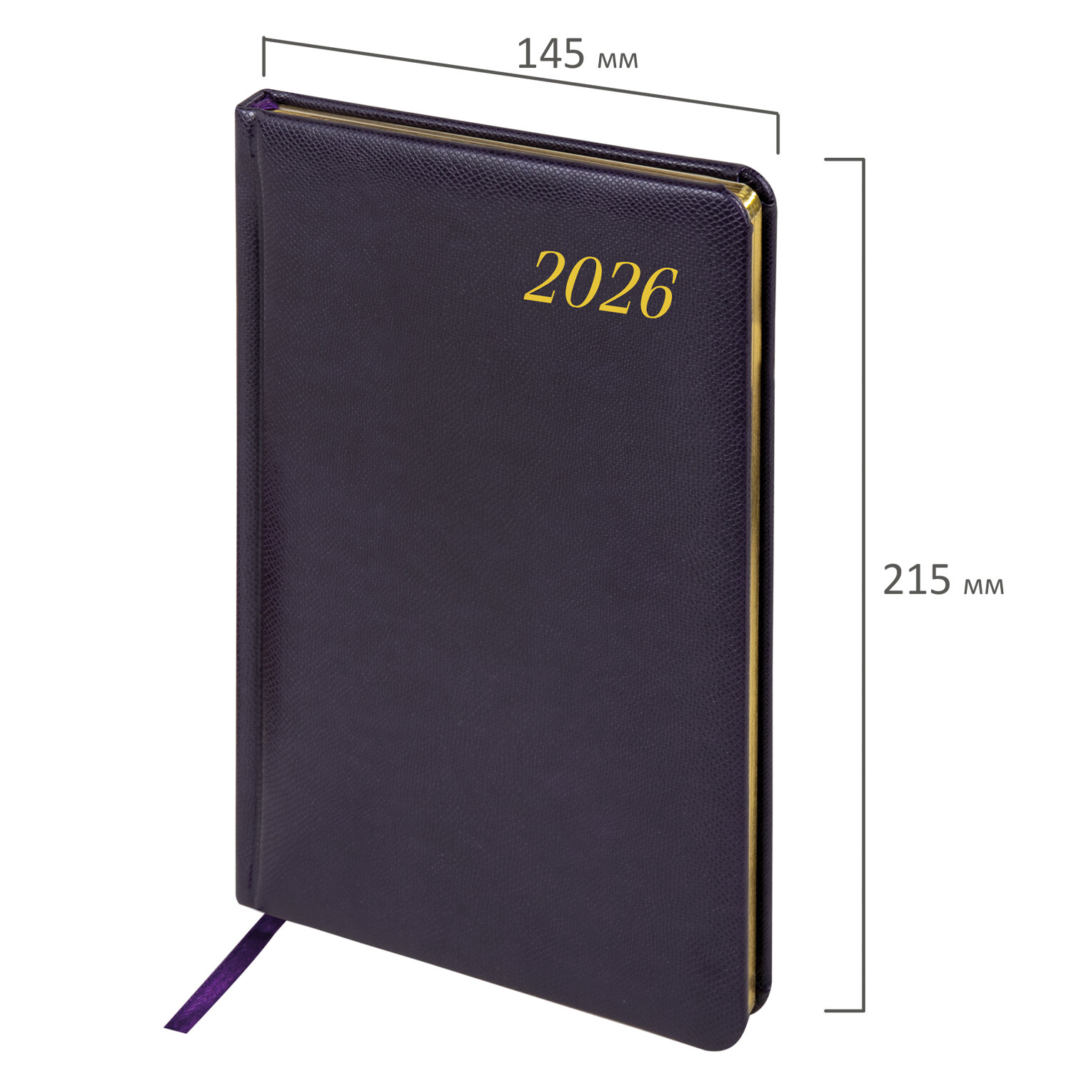 Внутренний блок включает 64 листа тонированной бумаги плотностью 70 г/м2. Благодаря стандартному формату А5 еженедельник удобно использовать как в офисе, так и на выездных деловых встречах. Твердая обложка, стилизованная под кожу рептилии, имеет благородный темно-фиолетовый цвет и подходит для горячего тиснения. Срез еженедельника украшен золотым фольгированием – это подчеркивает премиальность изделия. Дополнением является закладка-ляссе, с помощью которой при необходимости можно быстро открыть еженедельник на нужной странице. В конце внутреннего блока есть 7 страниц для записей и заметок. Обширный справочный материал расширяет функциональность еженедельника. Датированный еженедельник BRAUBERG «Iguana» идеально подойдет для офисных работников и людей, занимающихся бизнесом.