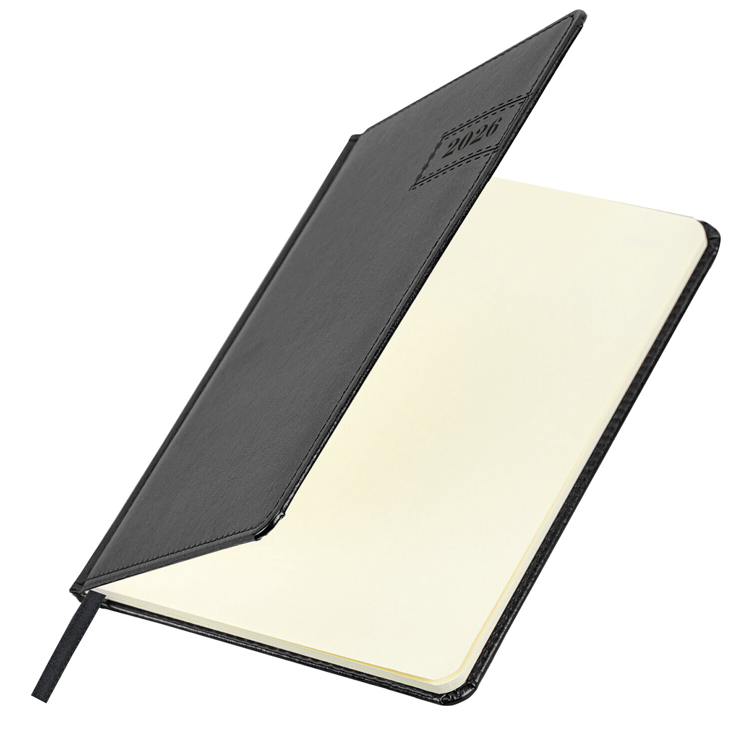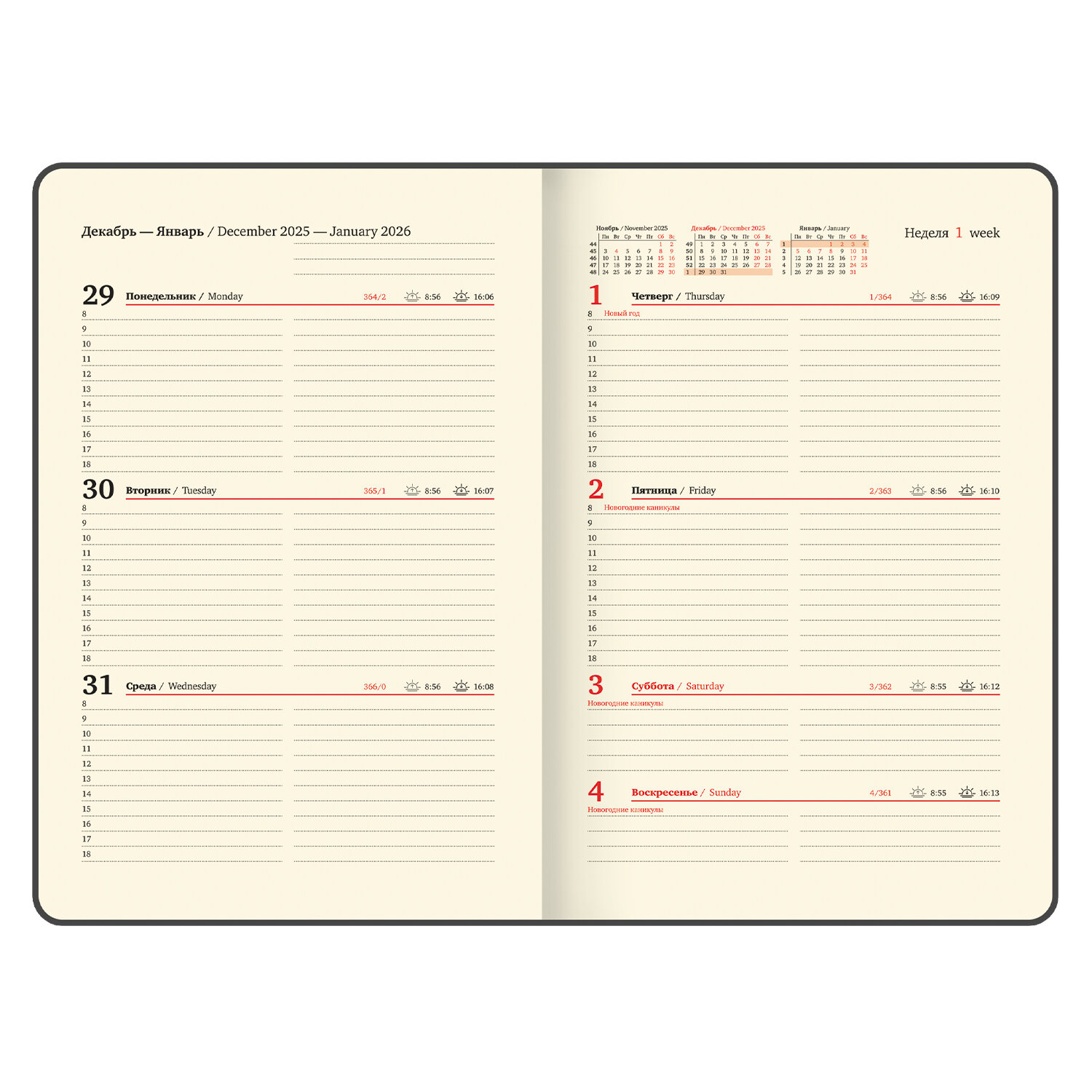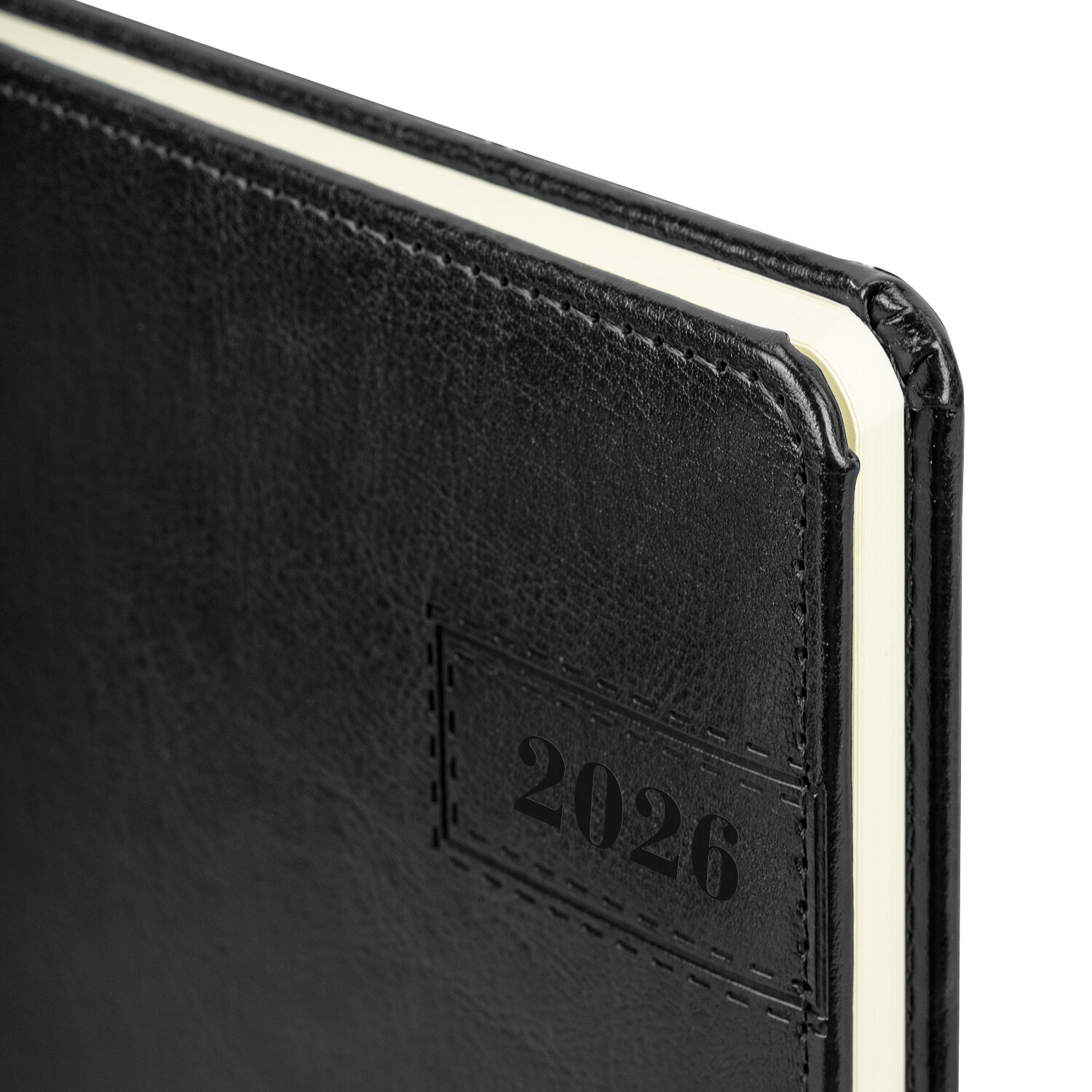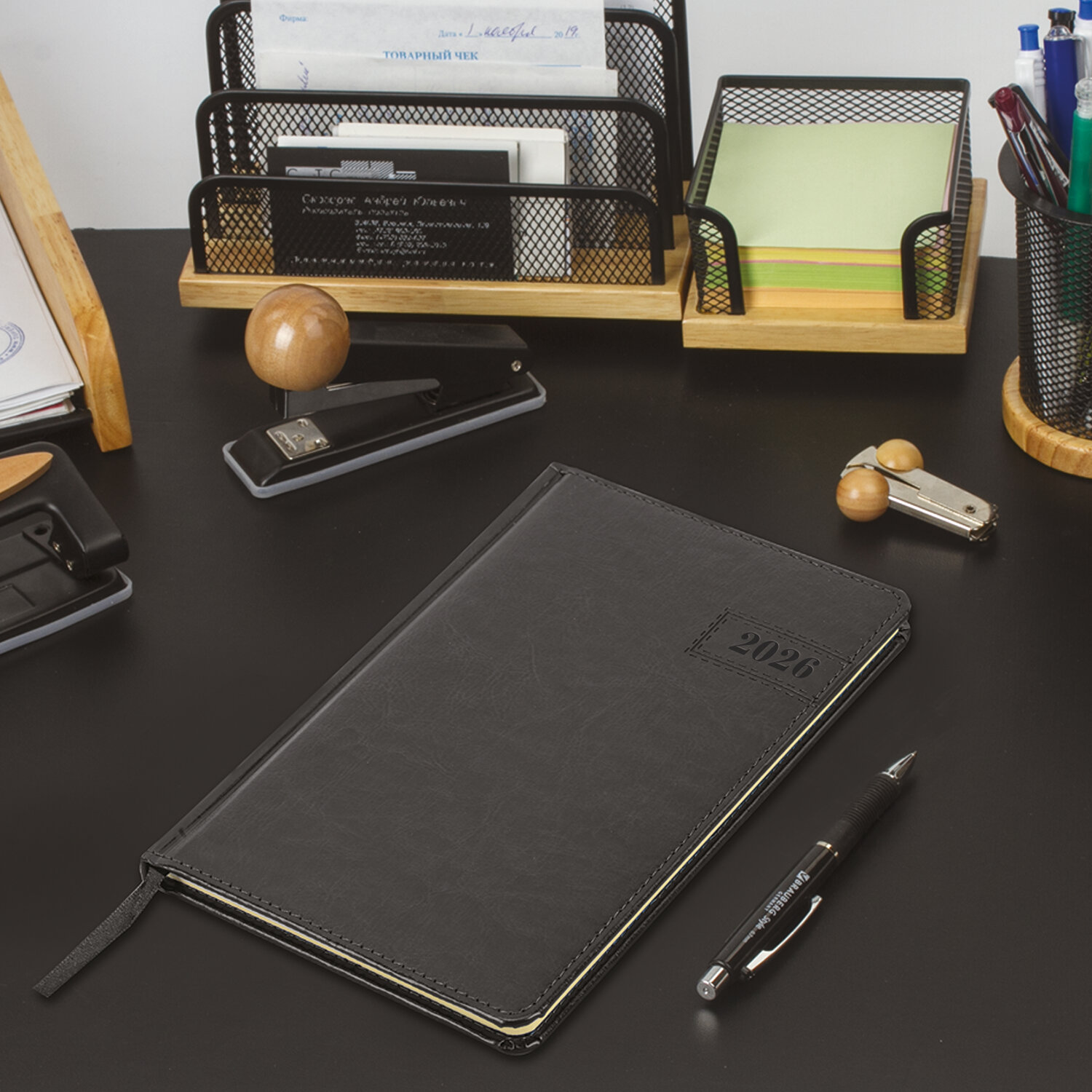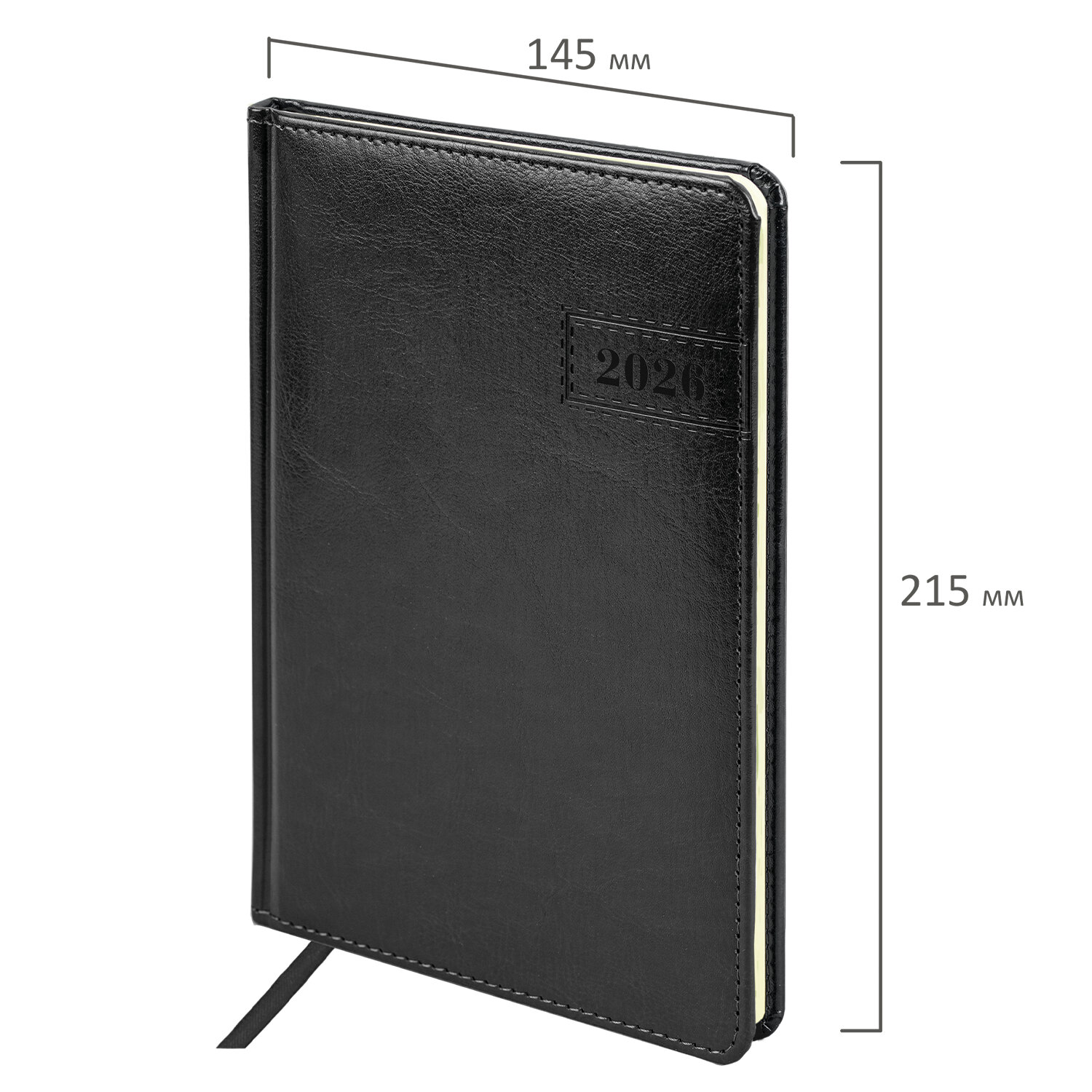 Еженедельник датированный 2026, А5, 145х215 мм, BRAUBERG «Imperial», под кожу, черный, 117175