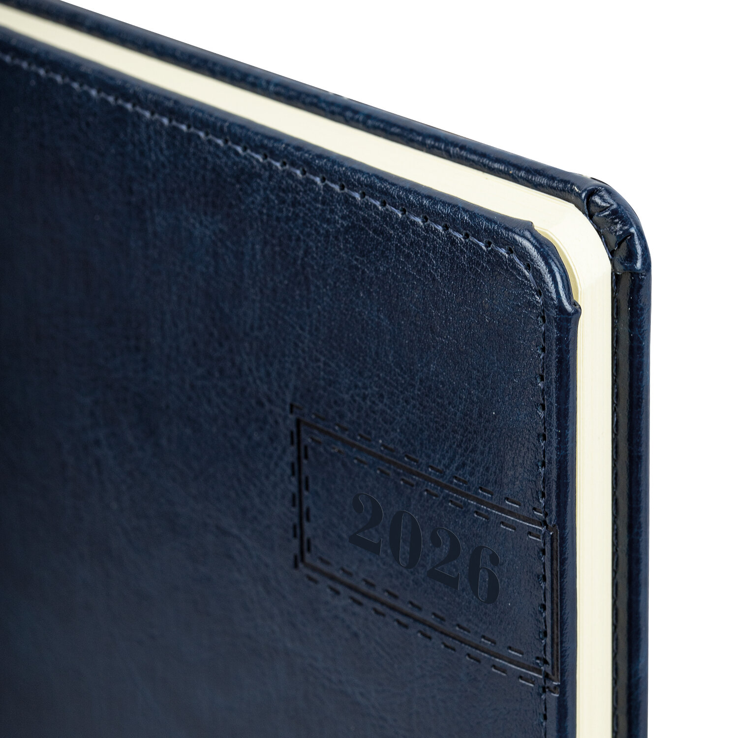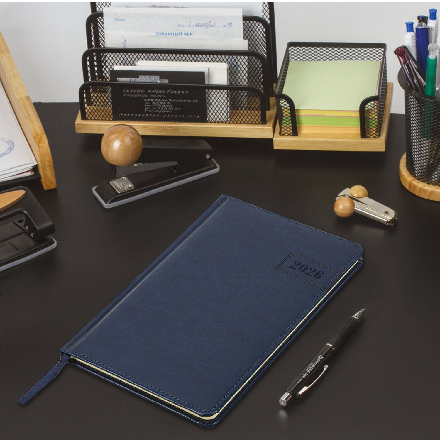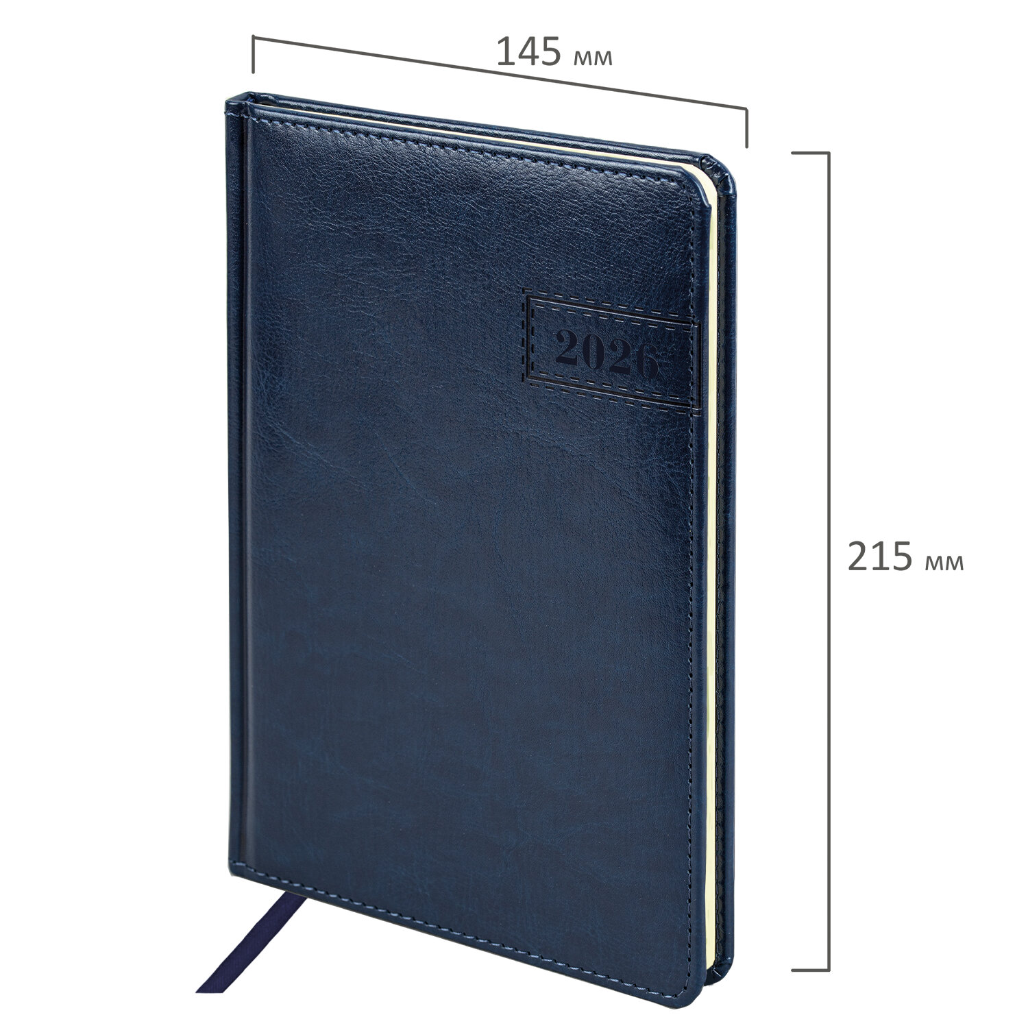 Еженедельник датированный 2026, А5, 145х215 мм, BRAUBERG «Imperial», под кожу, синий, 117174