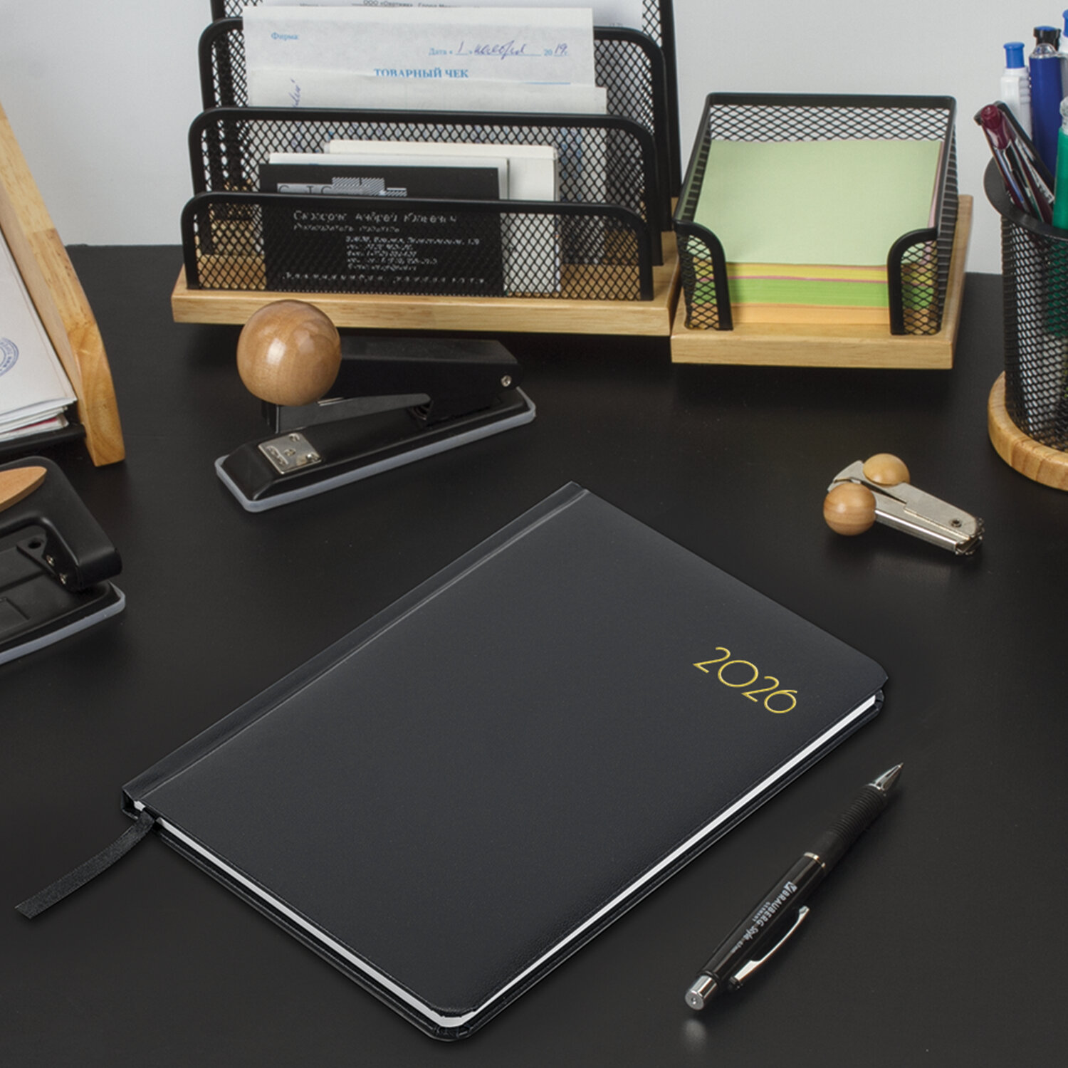 Датированный еженедельник BRAUBERG «Select» удобно использовать как в офисе, так и на выездных деловых встречах. Жесткая книжная обложка с легкой рельефной фактурой напоминает натуральную кожу черного цвета.