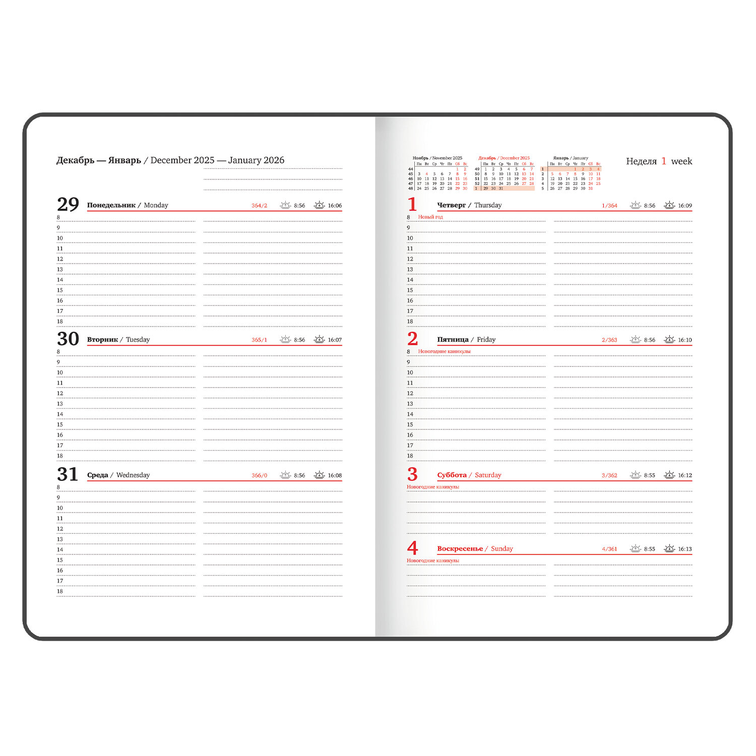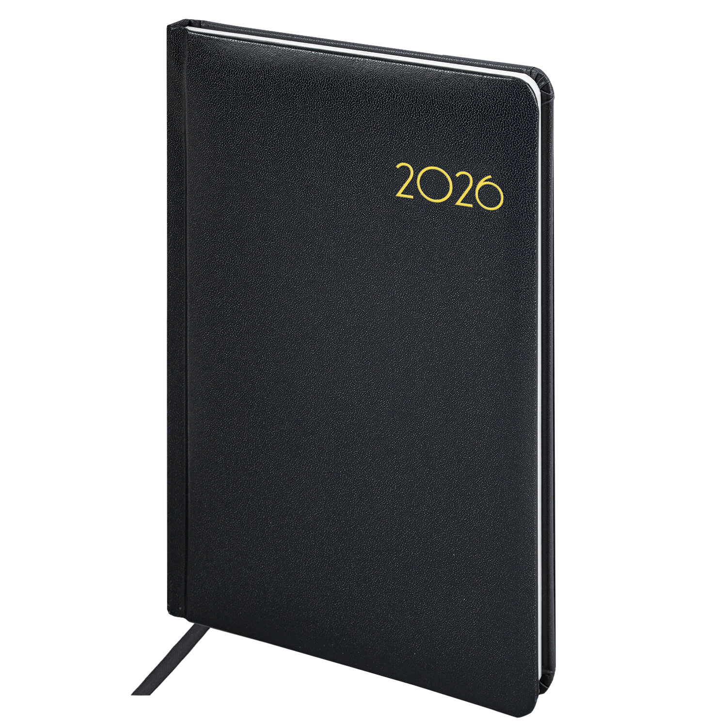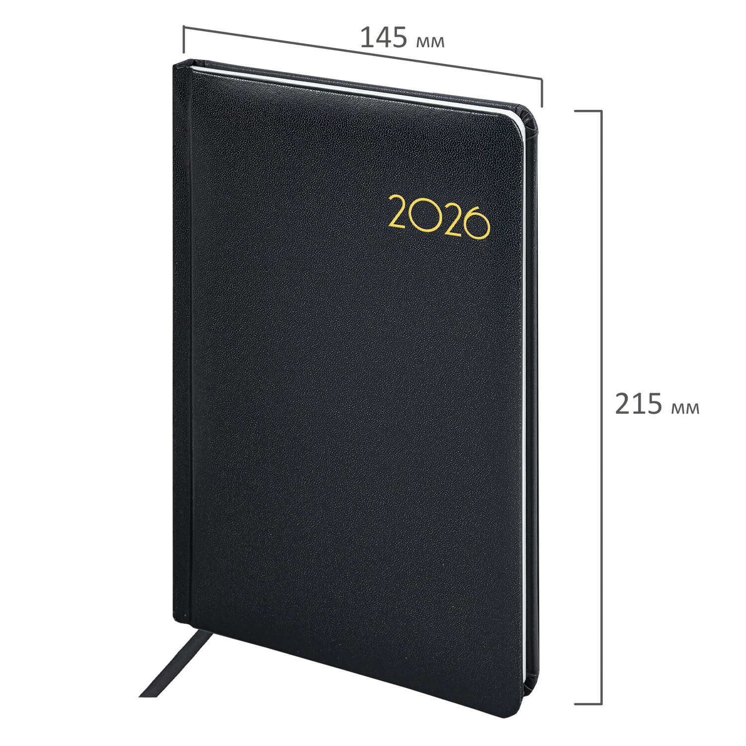 Еженедельник датированный 2026, А5, 145х215 мм, BRAUBERG «Select», балакрон, черный, 117182