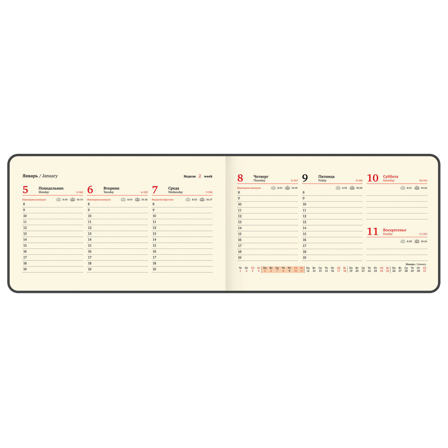 Внутренний блок включает 64 листа тонированной бумаги плотностью 70 г/м2. Благодаря малому формату А6 (105х160 мм) еженедельник удобно использовать как в офисе, так и на выездных деловых встречах. Гибкая обложка розового цвета, стилизованная под гладкую кожу, подходит для горячего тиснения. Дополнением является закладка-ляссе, с помощью которой при необходимости можно быстро открыть еженедельник на нужной странице. Для заметок в еженедельнике есть 7 страниц в конце внутреннего блока. Помимо прочего, еженедельник снабжен обширным справочным материалом. Датированный еженедельник BRAUBERG «Imprint» идеально подойдет для офисных работников и людей, занимающихся бизнесом, и ценящих свое драгоценное время.