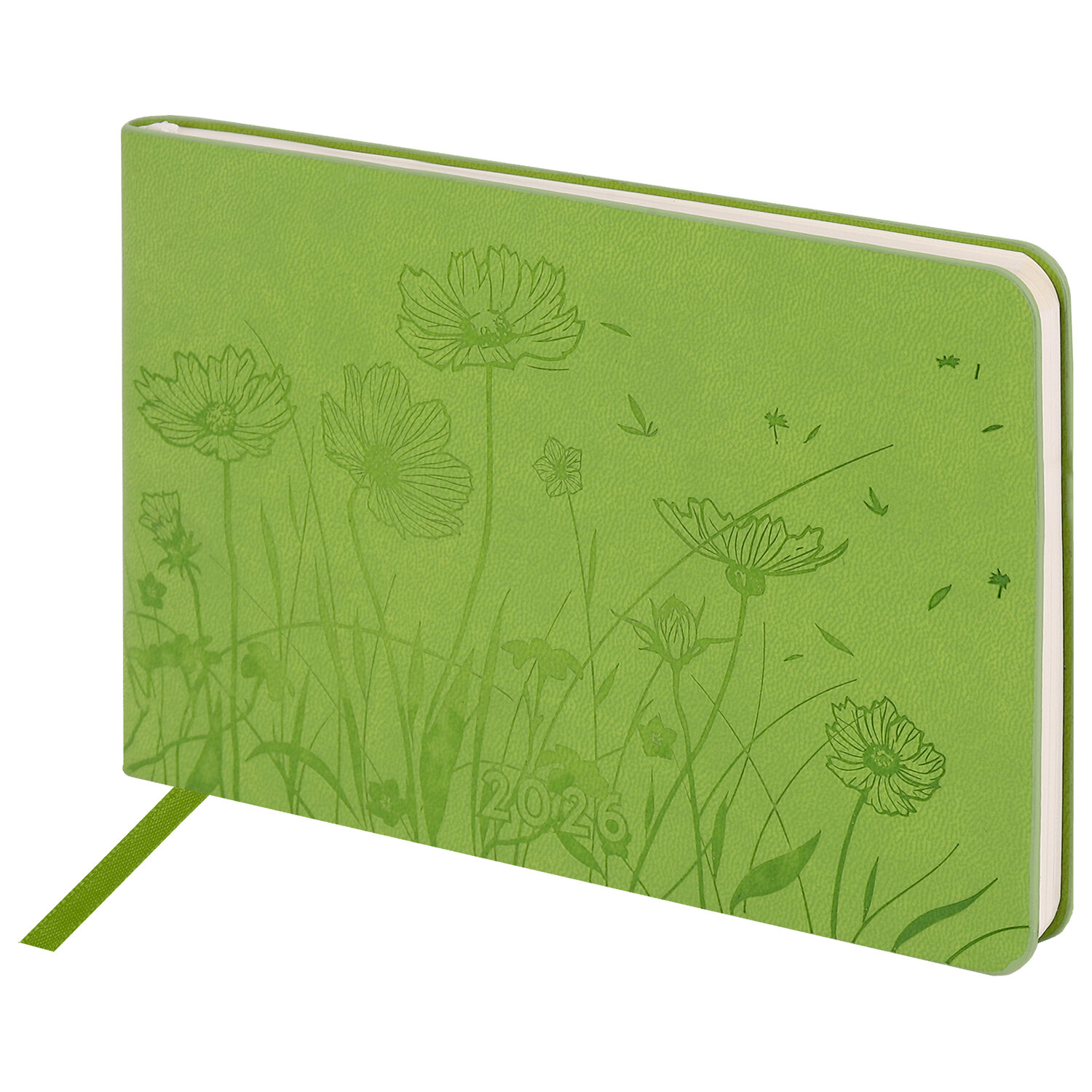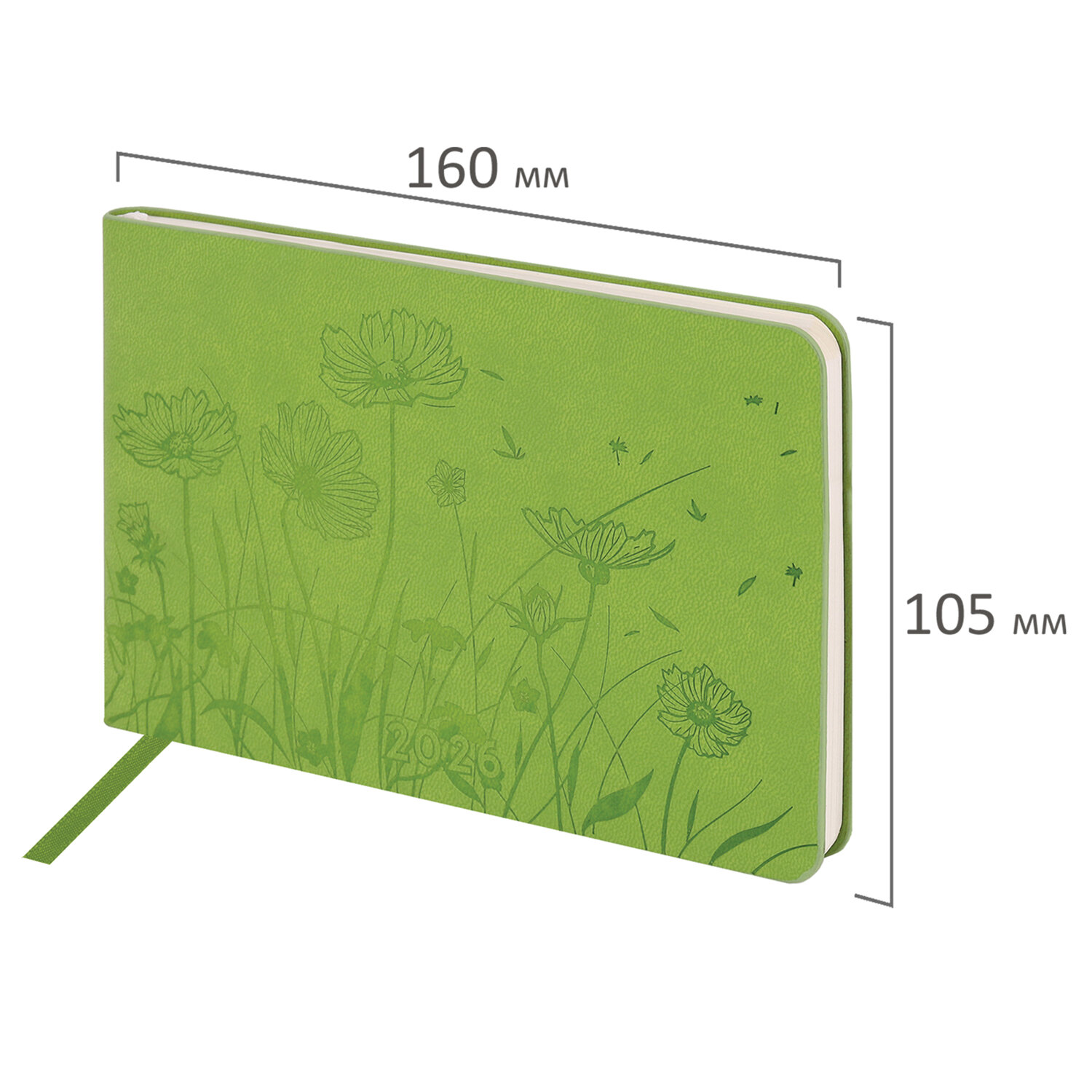 Еженедельник датированный 2026 МАЛЫЙ ФОРМАТ 105х160 мм, А6, BRAUBERG «Imprint», тиснение, зеленый, 117212