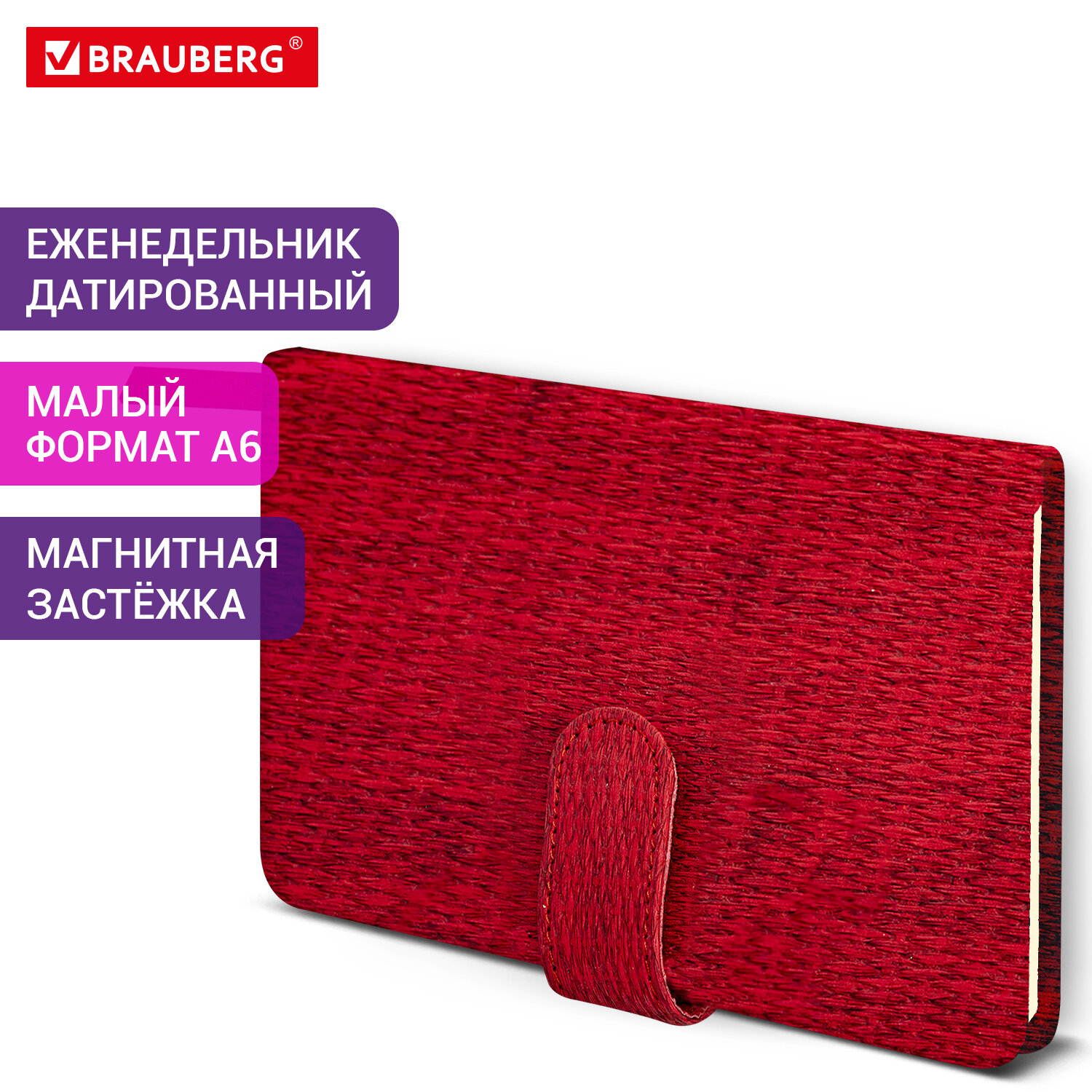 Еженедельник датированный 2026 МАЛЫЙ ФОРМАТ 95х155 мм, А6, BRAUBERG «Augustus», под кожу, красный, 117184