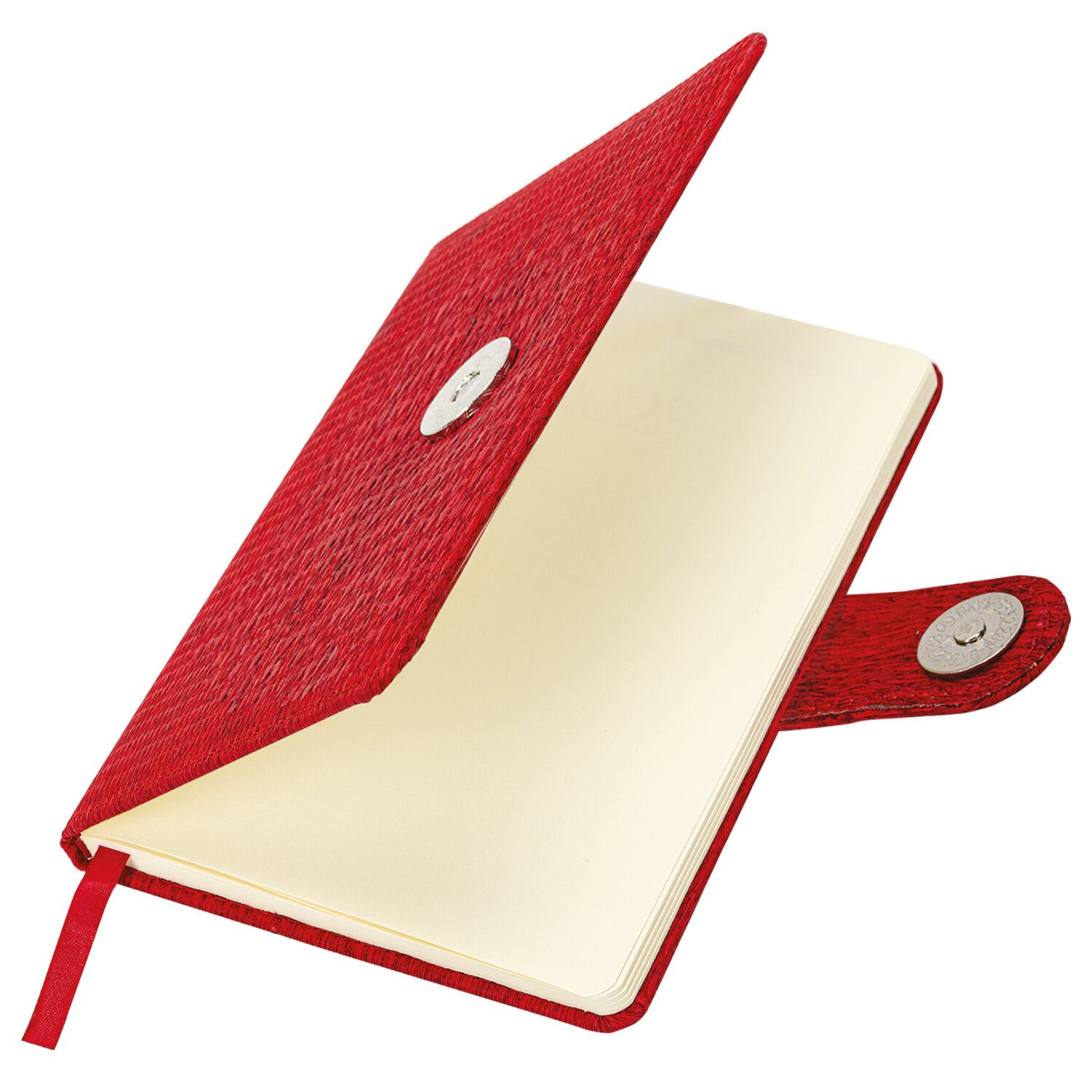 Твердая обложка красного цвета еженедельника BRAUBERG «Augustus» стилизована под кожу с текстурной выработкой и фиксируется магнитной застежкой, поэтому еженедельник не откроется в сумке или портфеле и страницы не помнутся. Подходит для горячего тиснения.