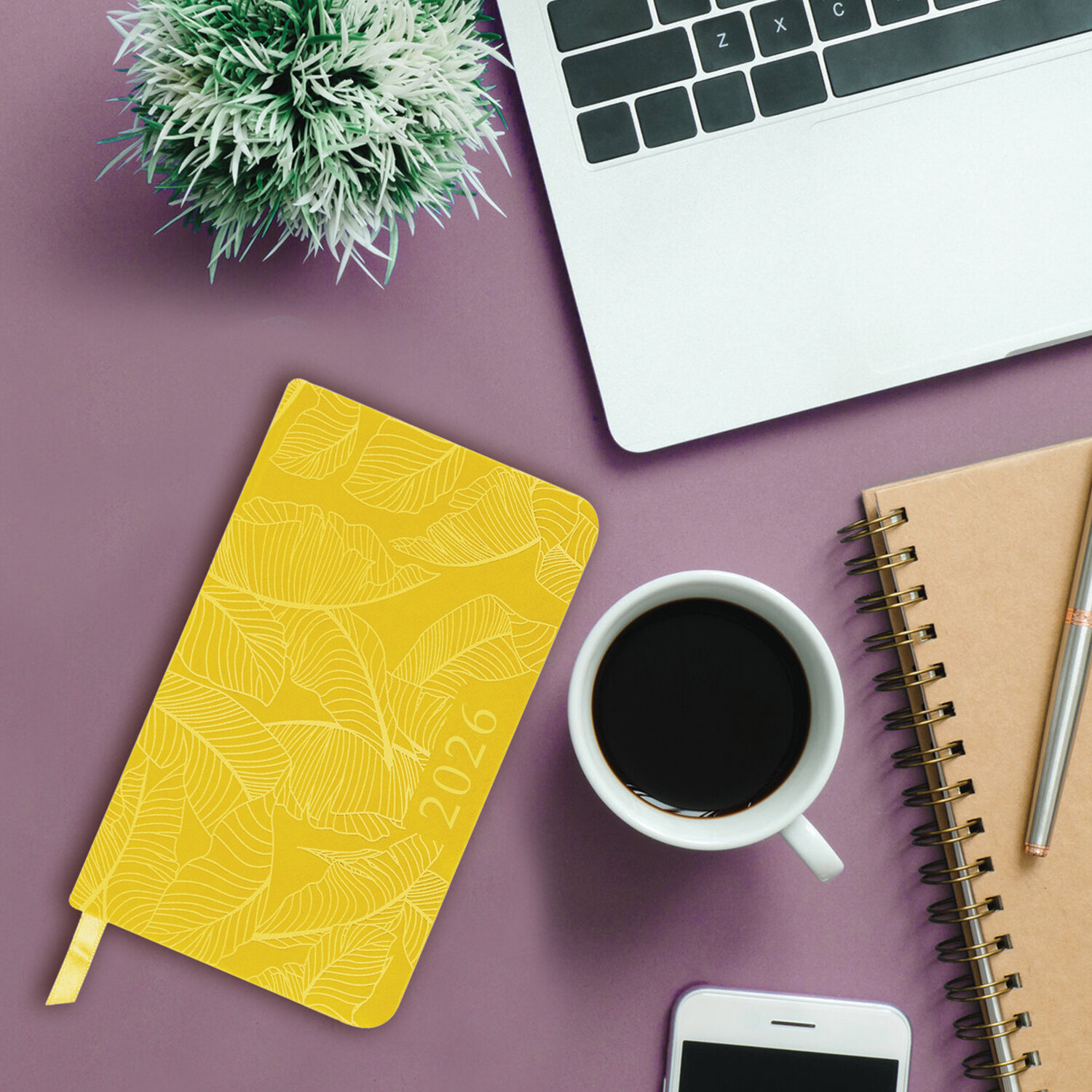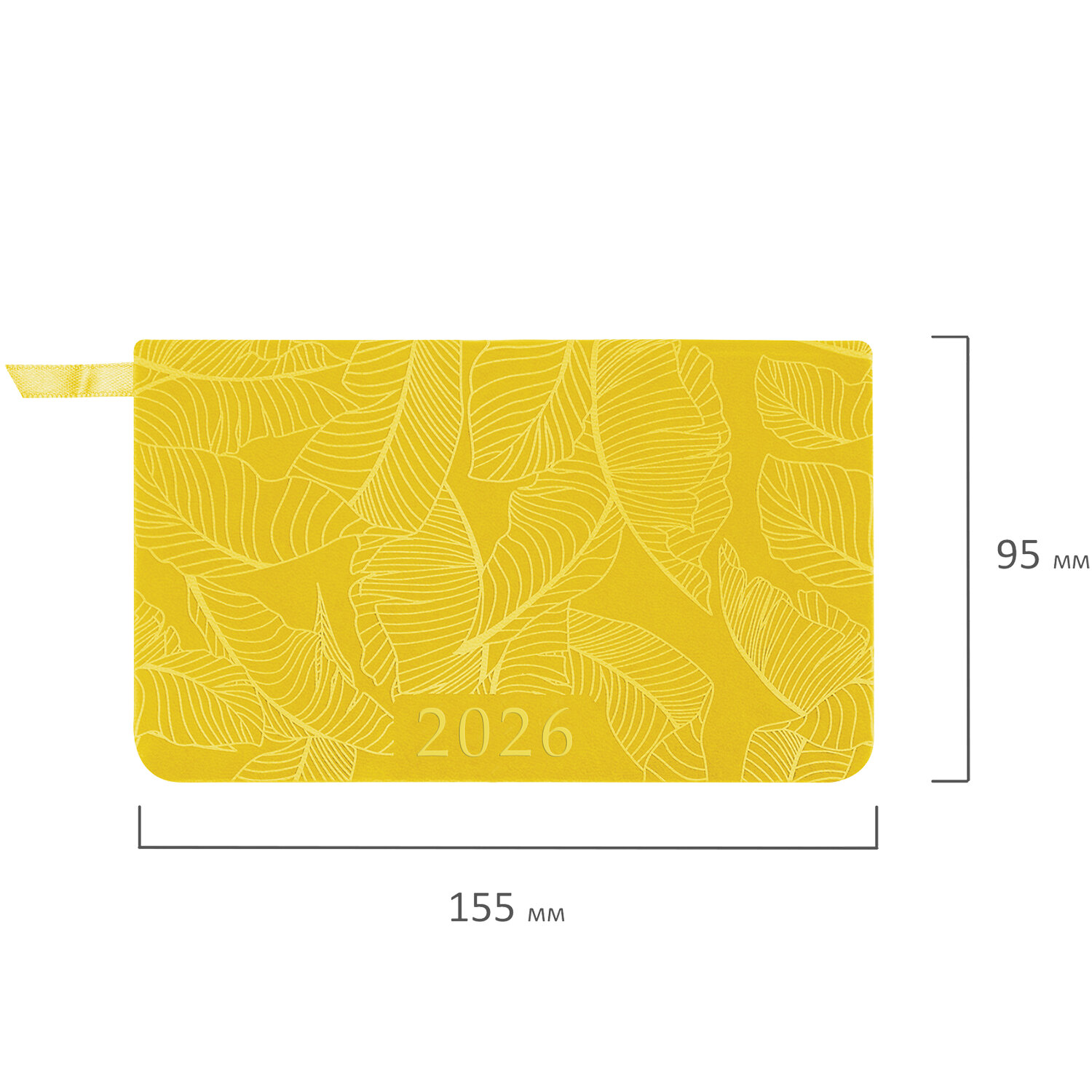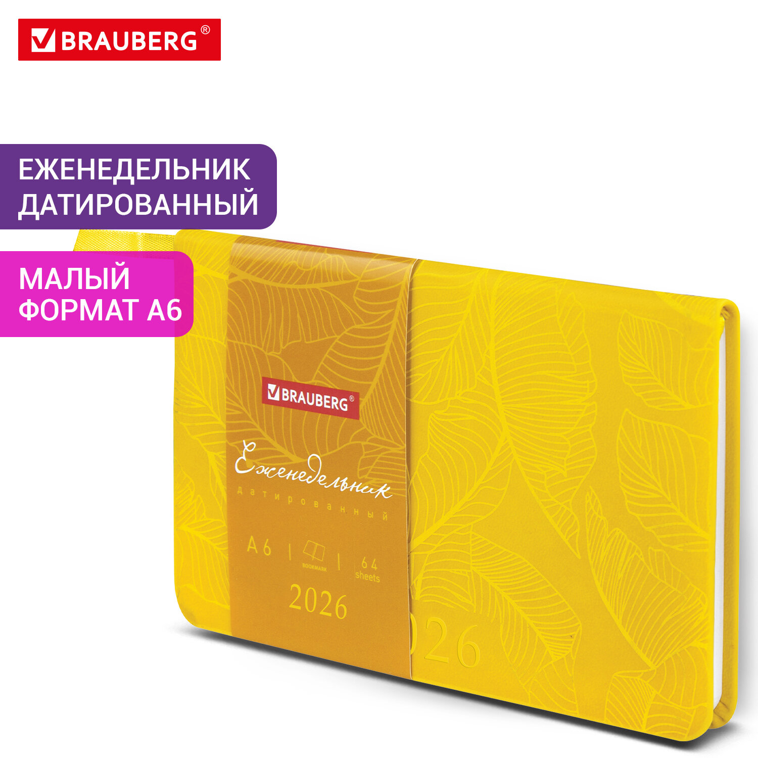 Внутренний блок включает 64 листа белой бумаги плотностью 70 г/м2. Благодаря малому формату А6 (95х155 мм) еженедельник удобно использовать как в офисе, так и на выездных деловых встречах. Мягкая (интегральная) обложка желтого цвета под гладкую кожу имеет декоративное тиснение, что придает ежедневнику особый шарм. Материал обложки подходит для горячего тиснения. Дополнением является закладка-ляссе, с помощью которой при необходимости можно быстро открыть еженедельник на нужной странице. Для заметок в еженедельнике есть 7 страниц в конце внутреннего блока. Помимо прочего, еженедельник снабжен обширным справочным материалом. Датированный еженедельник BRAUBERG «Foliage» идеально подойдет для офисных работников и людей, занимающихся бизнесом и ценящих свое драгоценное время.