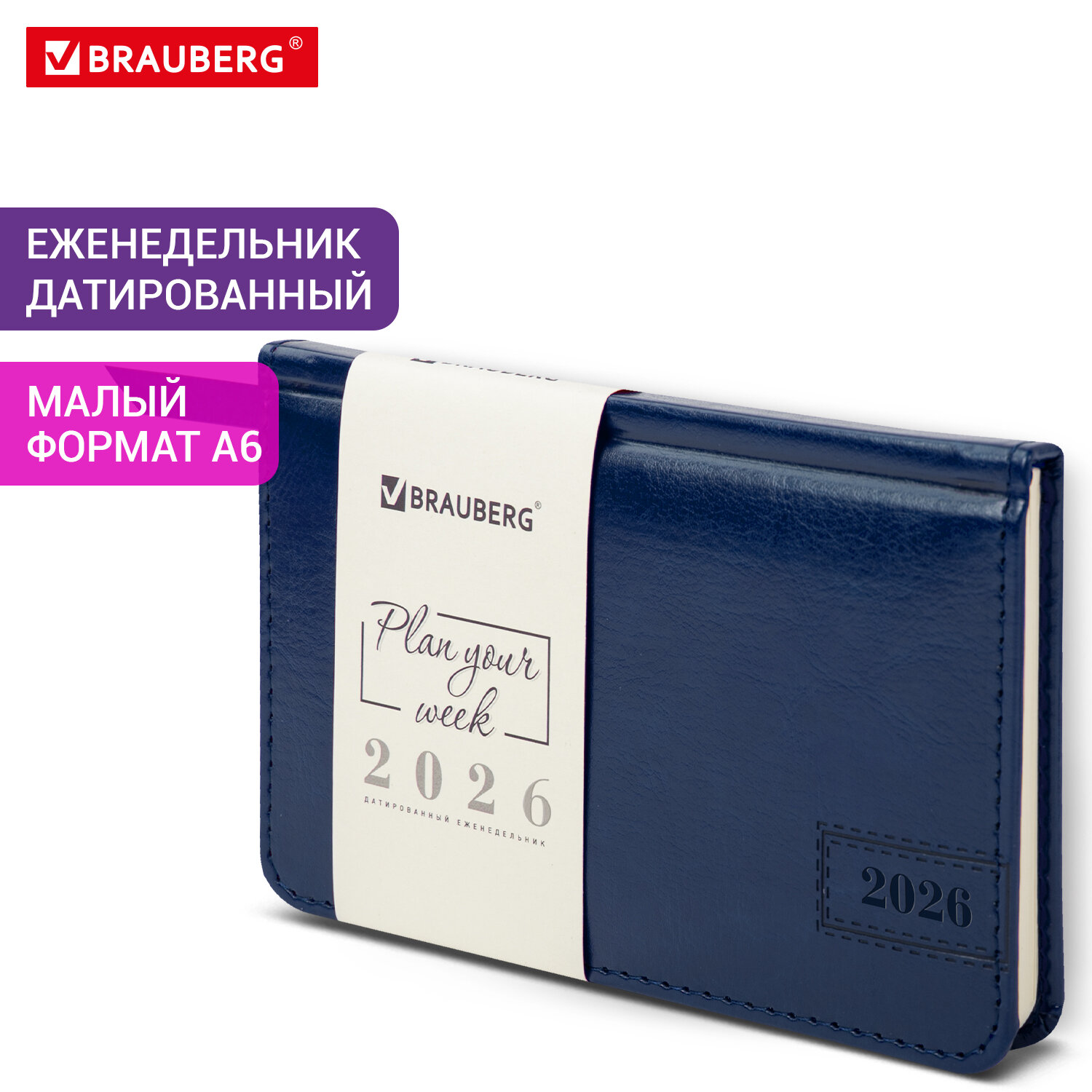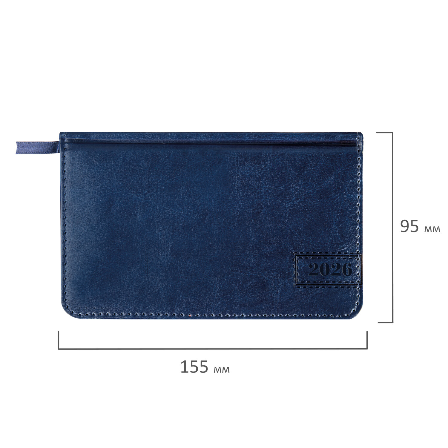 Еженедельник датированный 2026, МАЛЫЙ ФОРМАТ 95х155 мм, А6, BRAUBERG «Imperial», под кожу, синий, 117187