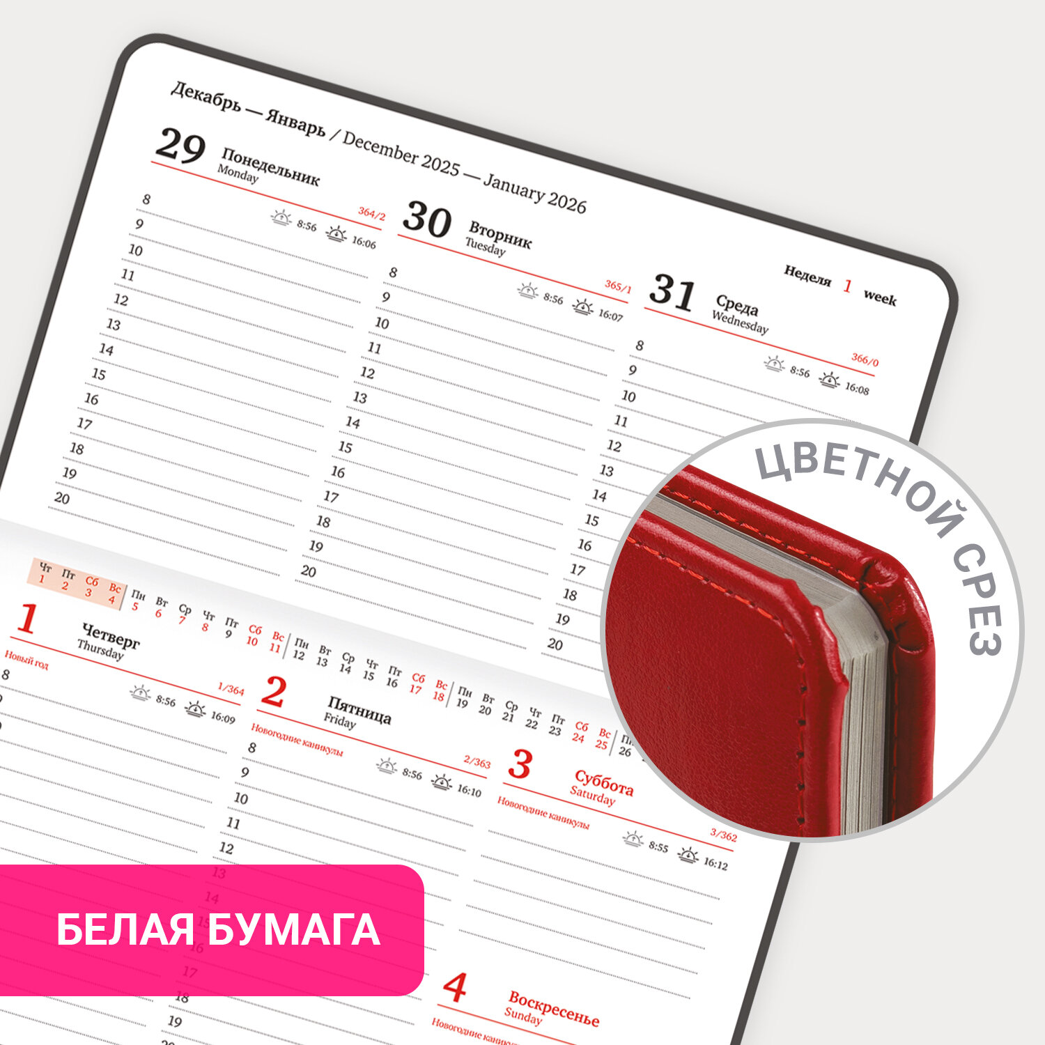 Еженедельник серии «Rainbow» бренда BRAUBERG с яркой красной обложкой предназначен для энергичных людей, любящих нестандартные подходы к решению поставленных задач.