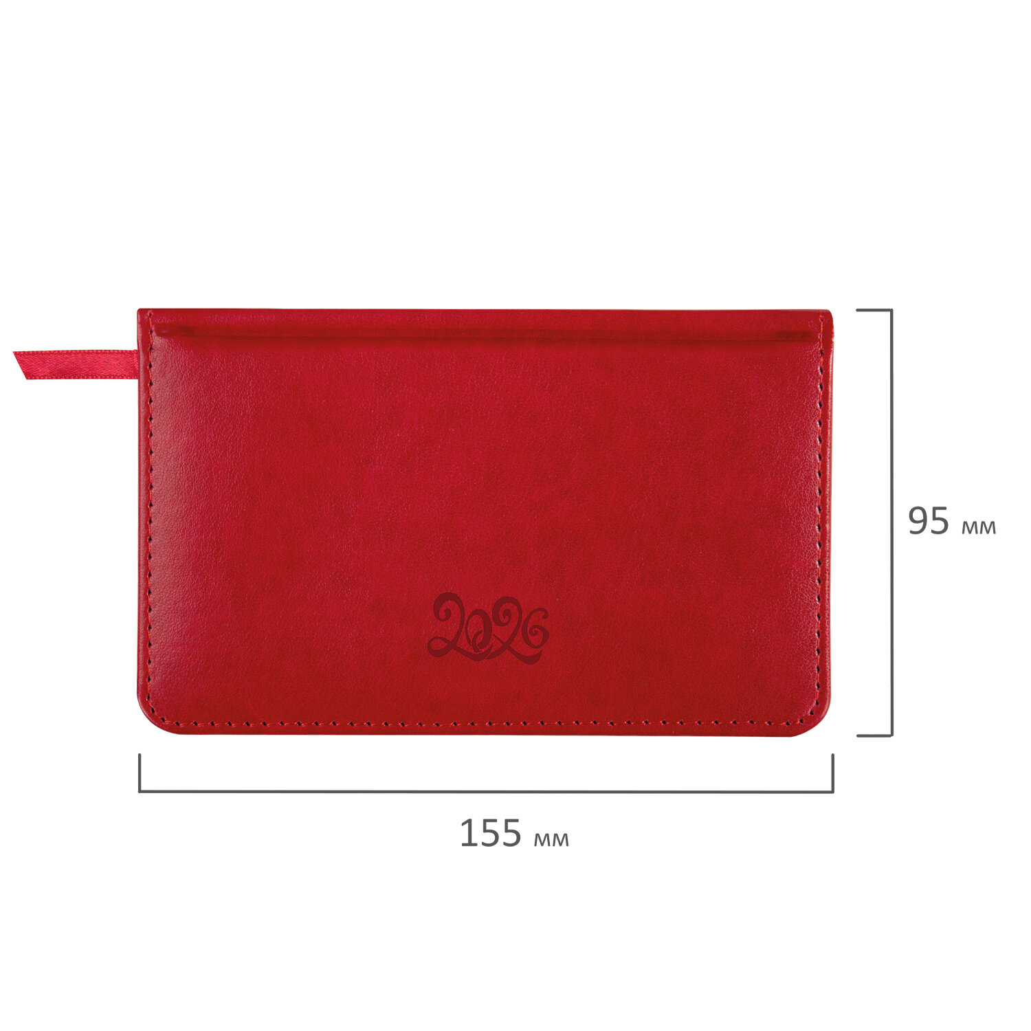 Еженедельник датированный 2026, МАЛЫЙ ФОРМАТ 95х155 мм, А6, BRAUBERG «Rainbow», под кожу, красный, 117190
