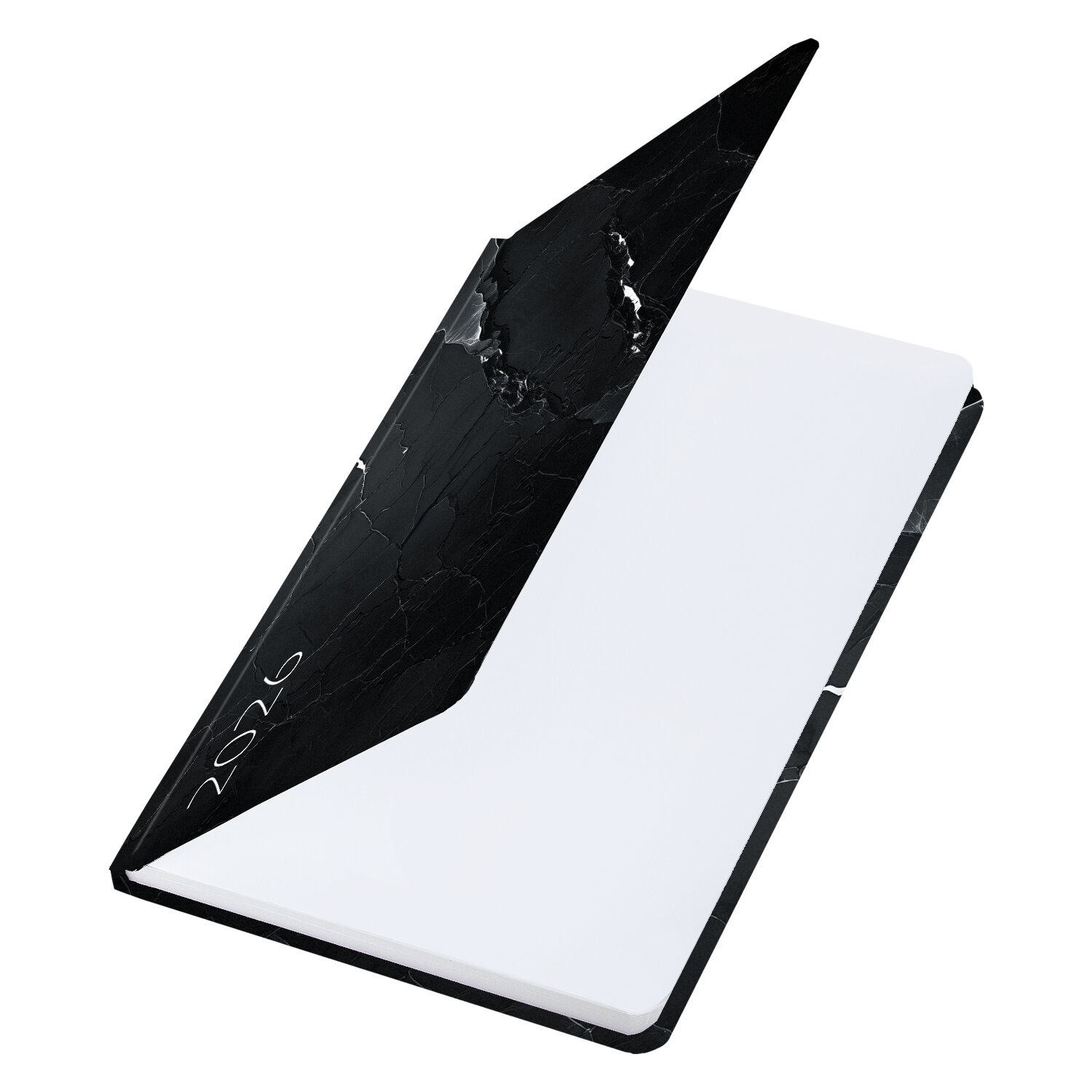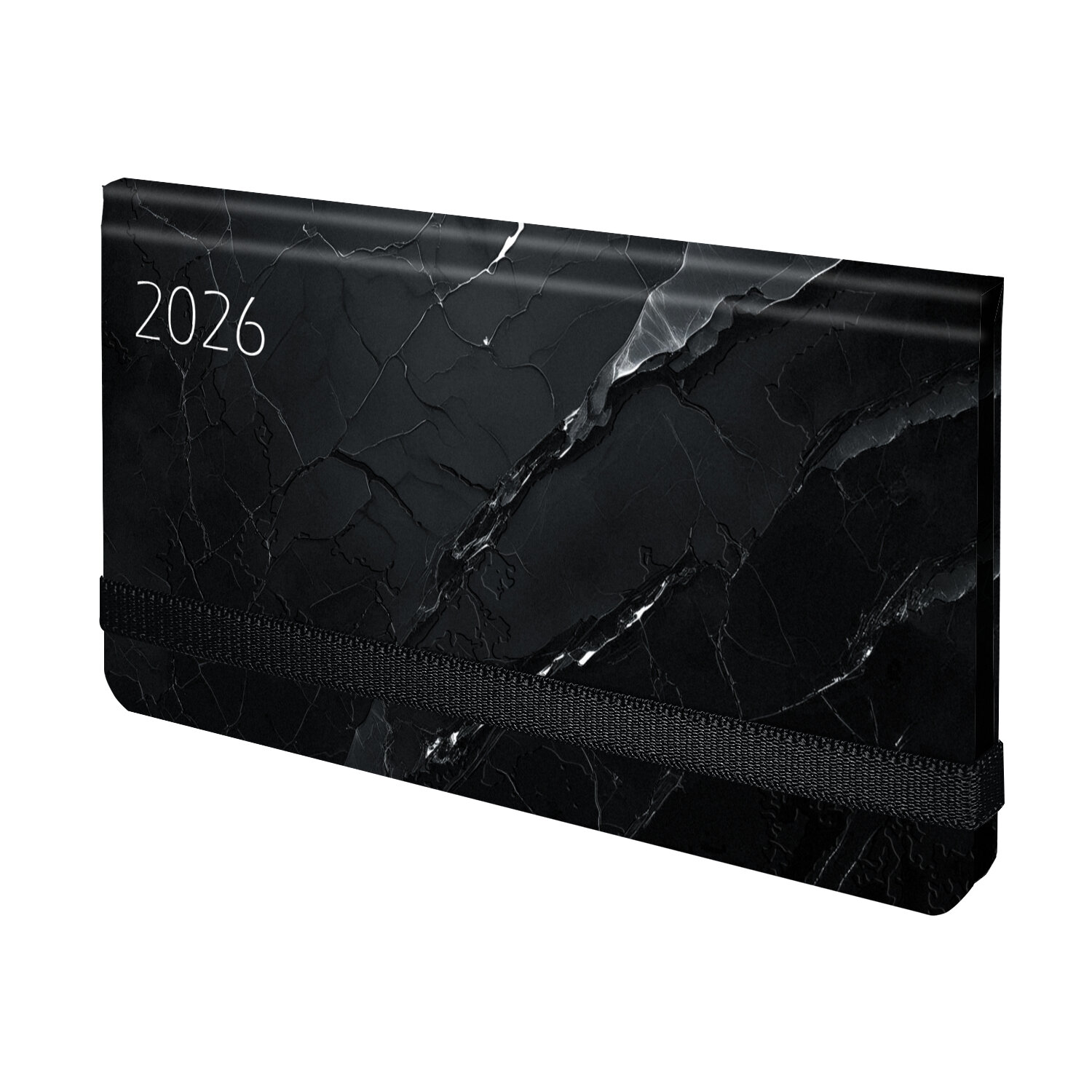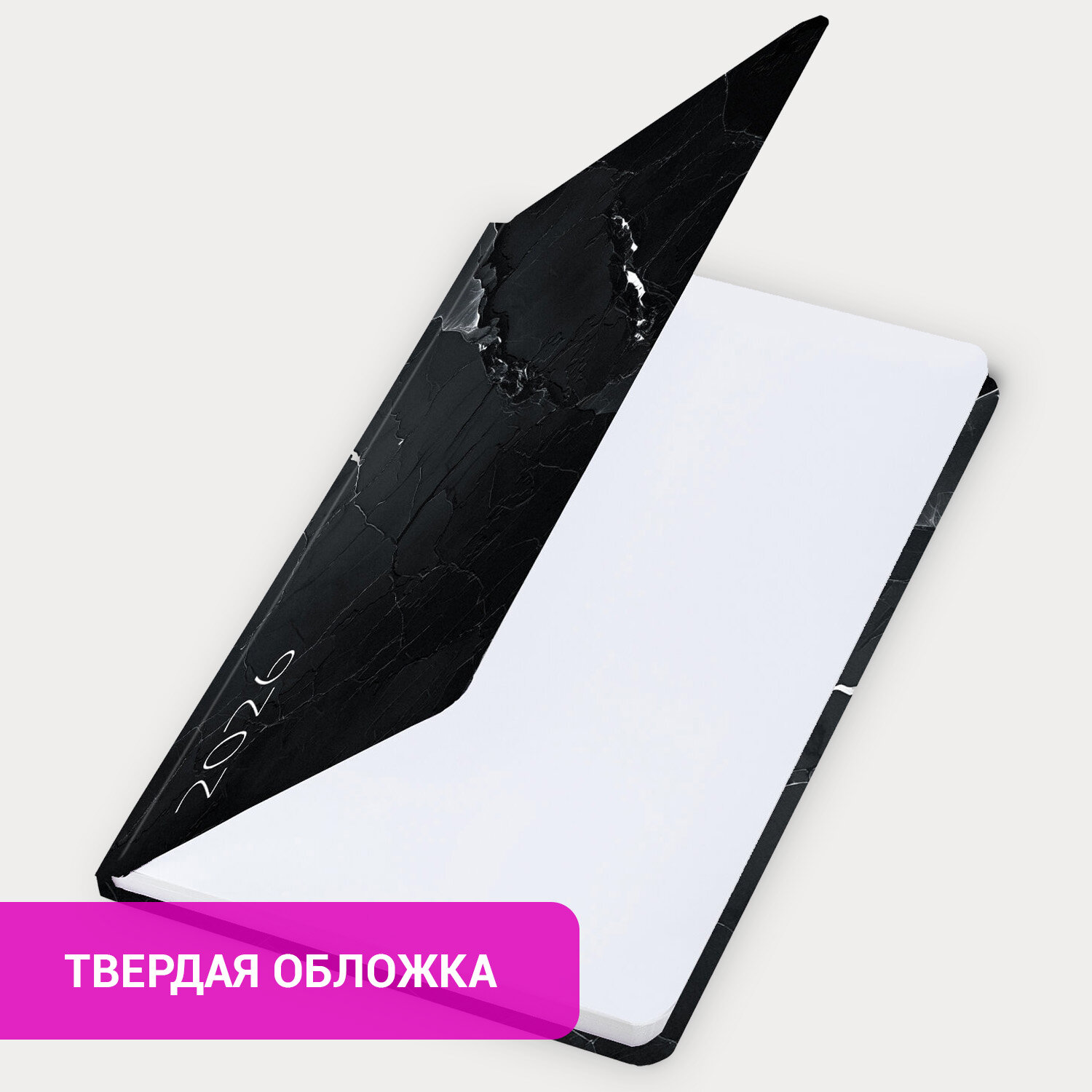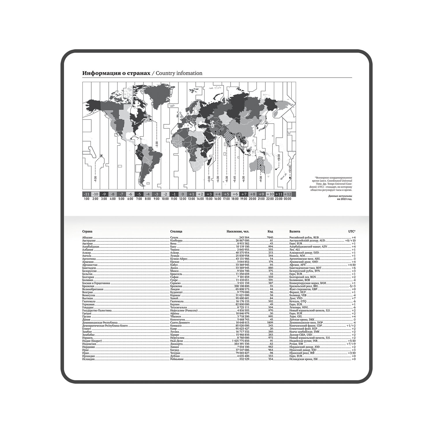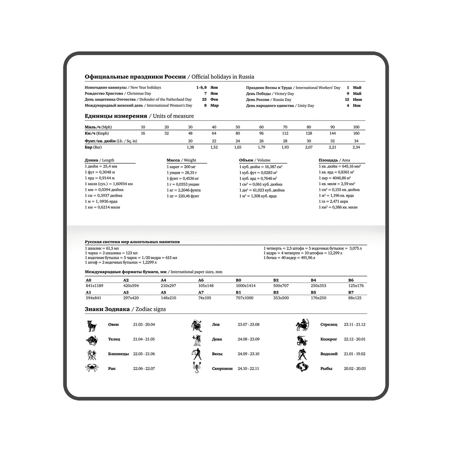 Внутренний блок содержит 64 листа офсетной бумаги белого цвета плотностью 60 г/м2. Благодаря малому формату (171х93 мм) еженедельник удобно использовать как в офисе, так и на выездных деловых встречах.Обложка 7БЦ (твердый переплет с матовой пленкой и выборочным лаком) обеспечивает долговечность при активном использовании.Резинка-фиксатор надежно защищает от случайного раскрытия в сумке или портфеле. Еженедельник снабжен справочным материалом.