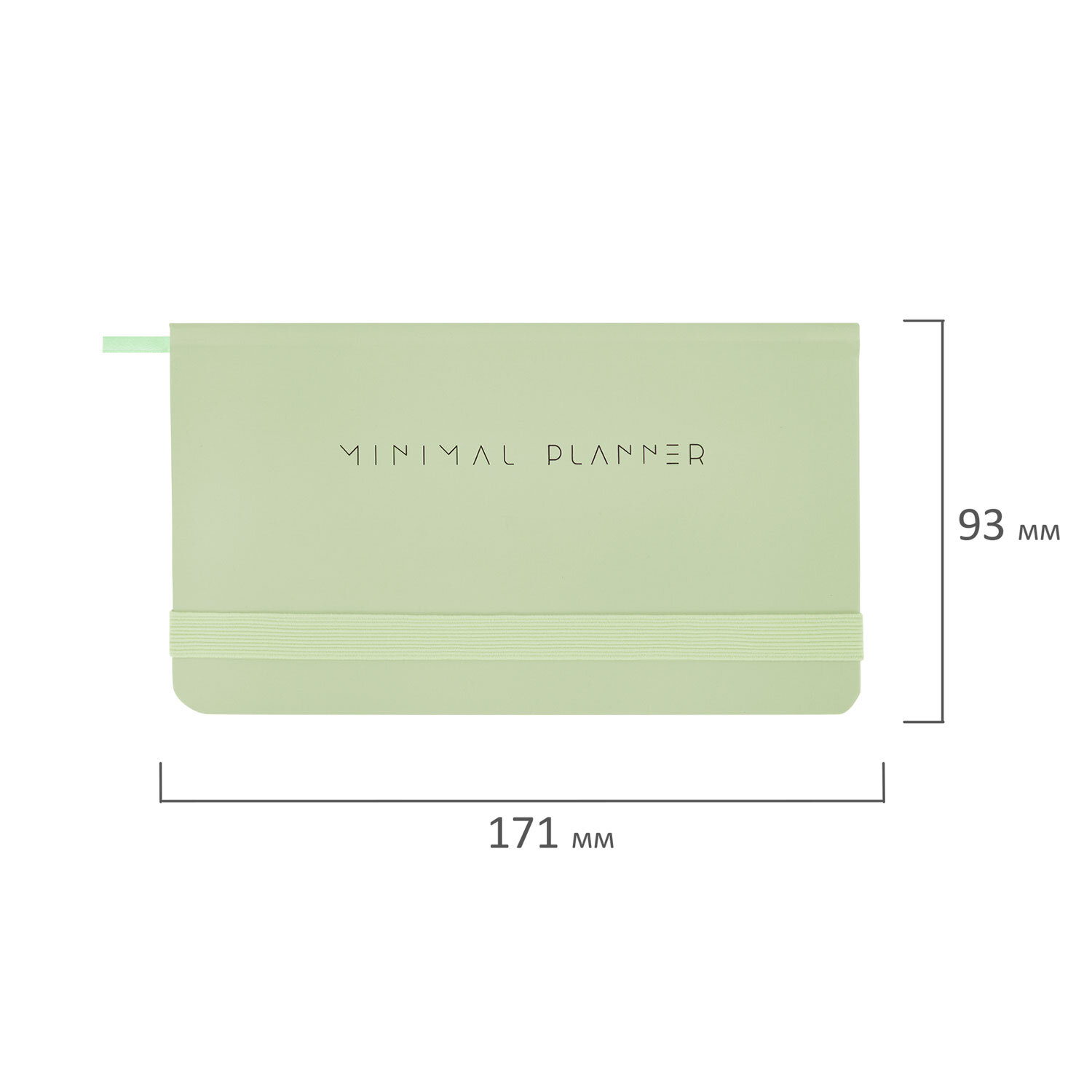 Еженедельник недатированный с резинкой 171х93 мм, BRAUBERG, твердый, 64 л., «Minimal», зеленый, 116314