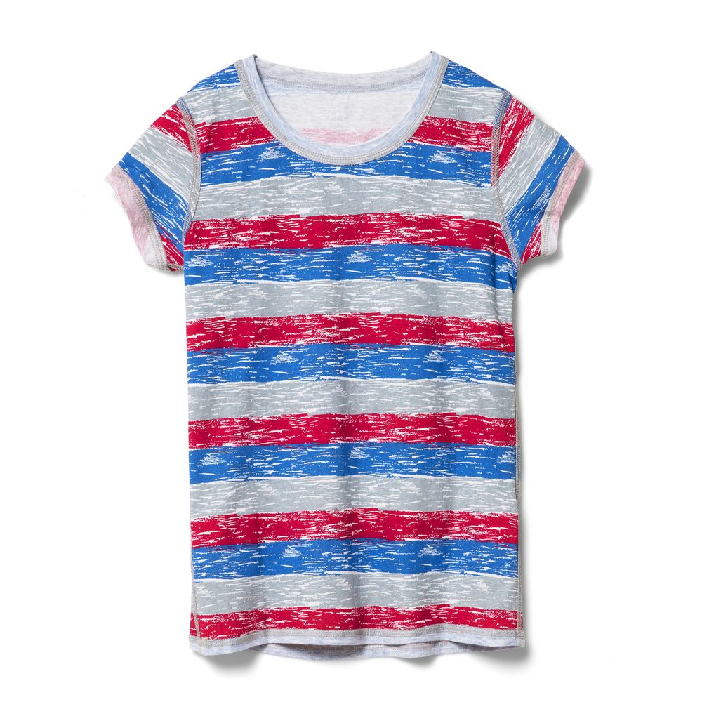 Двусторонняя женская футболка с круглым вырезом и плоскими швами.