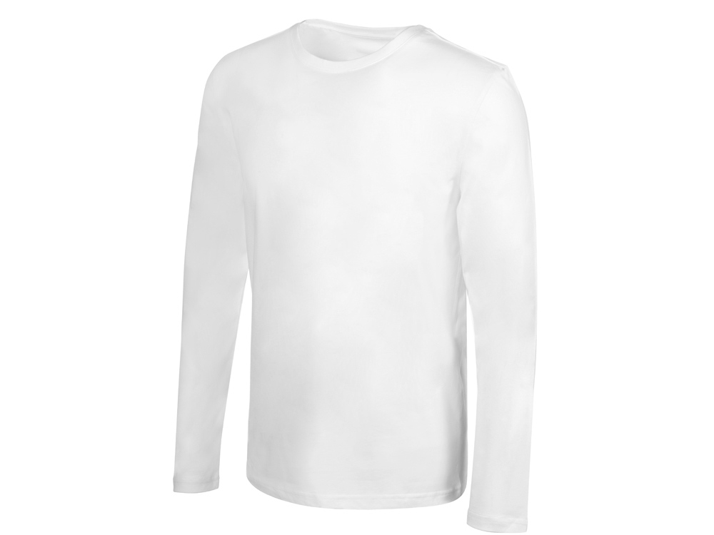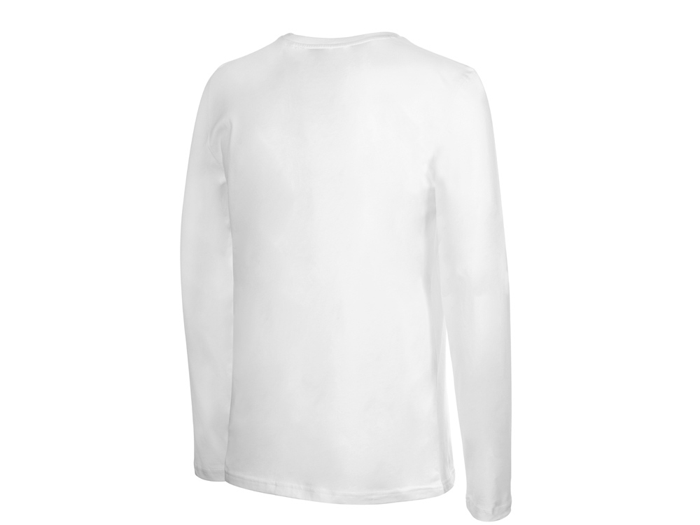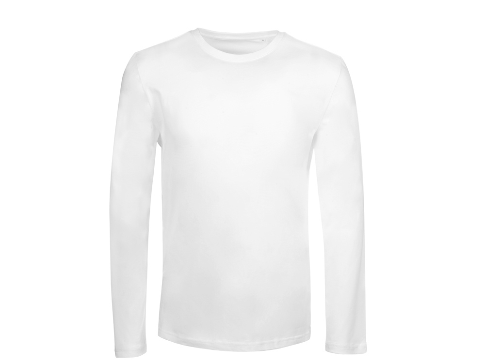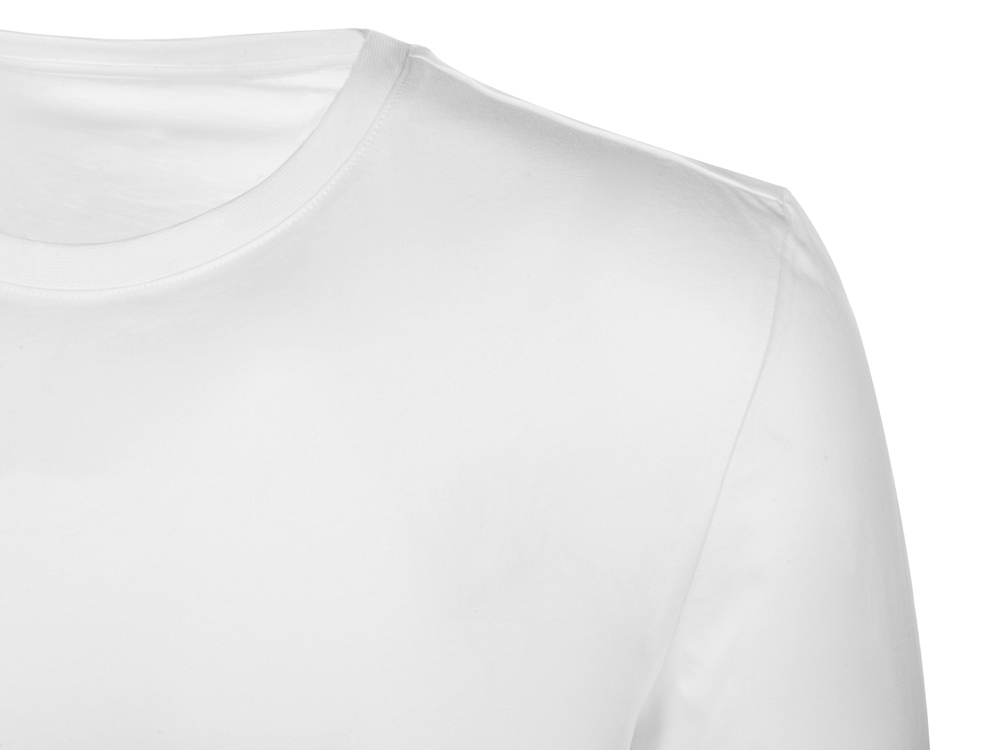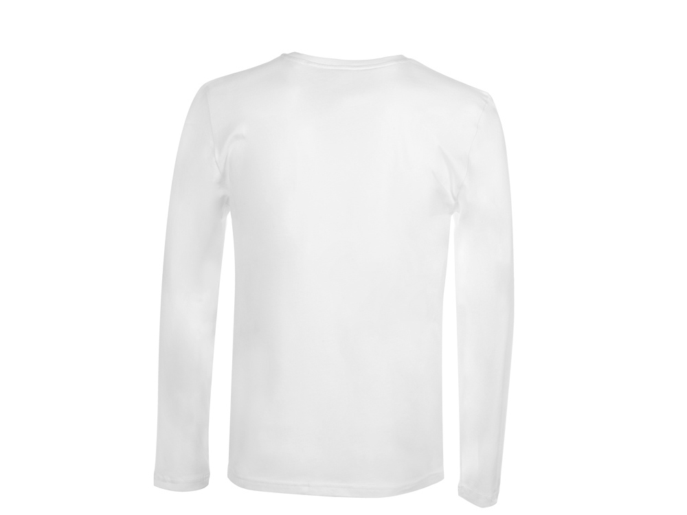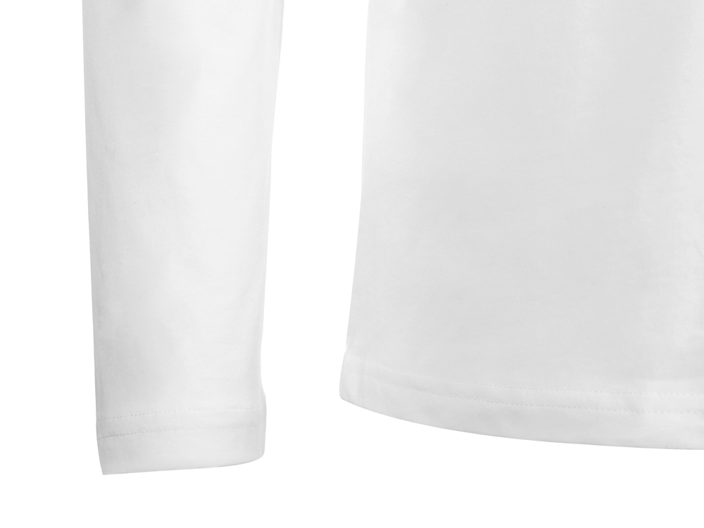 Футболка с длинным рукавом комфортной посадки с боковыми швами. Горловина обработана рибом 1х1 и тесьмой по спинке. Футболка выполнена из хлопкового джерси.