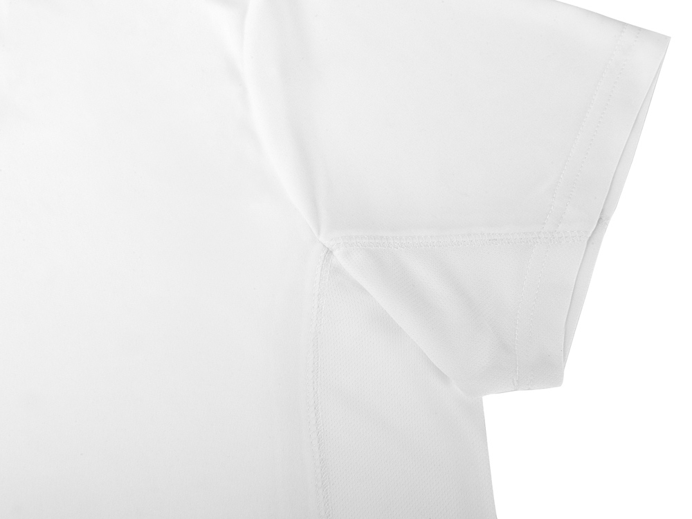Мужская спортивная футболка выполнена из двух разных видов полотна: спинка и перед из интерлока имеют гладкую поверхность, а декоративные вставки выполнены из спортивной сетки ячеистой структуры. Благодаря наличию таких вставок воздух свободно проникает под футболку, охлаждая кожу во время спортивных нагрузок.