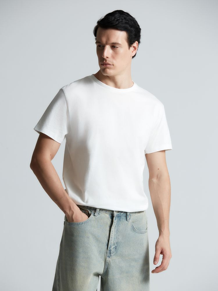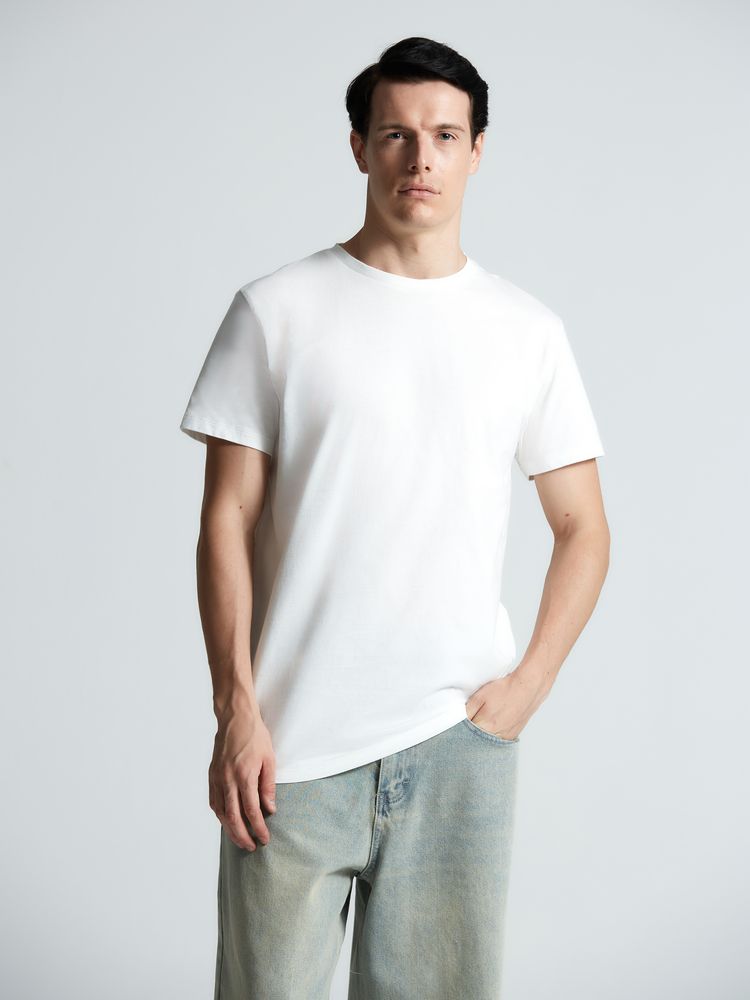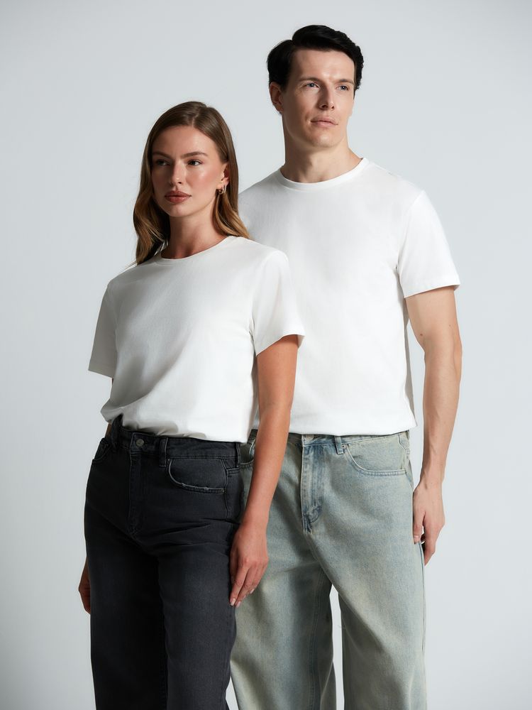 Классическая кроеная футболка унисекс из гребенного хлопка. Благодаря тонким и длинным волокнам хлопка ткань футболки отличается гладкостью, ровностью и прочностью, отлично сохраняет форму, не деформируются и не выцветает при стирке. Горловина выполнена резинкой 1×1. Слегка приталенный силуэт.