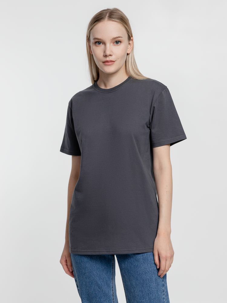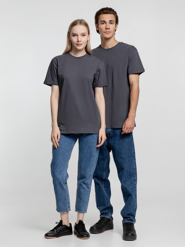 Базовая футболка унисекс прямого силуэта без боковых швов (размеры XS–4XL) или с боковыми швами (размеры 5XL–6XL).
