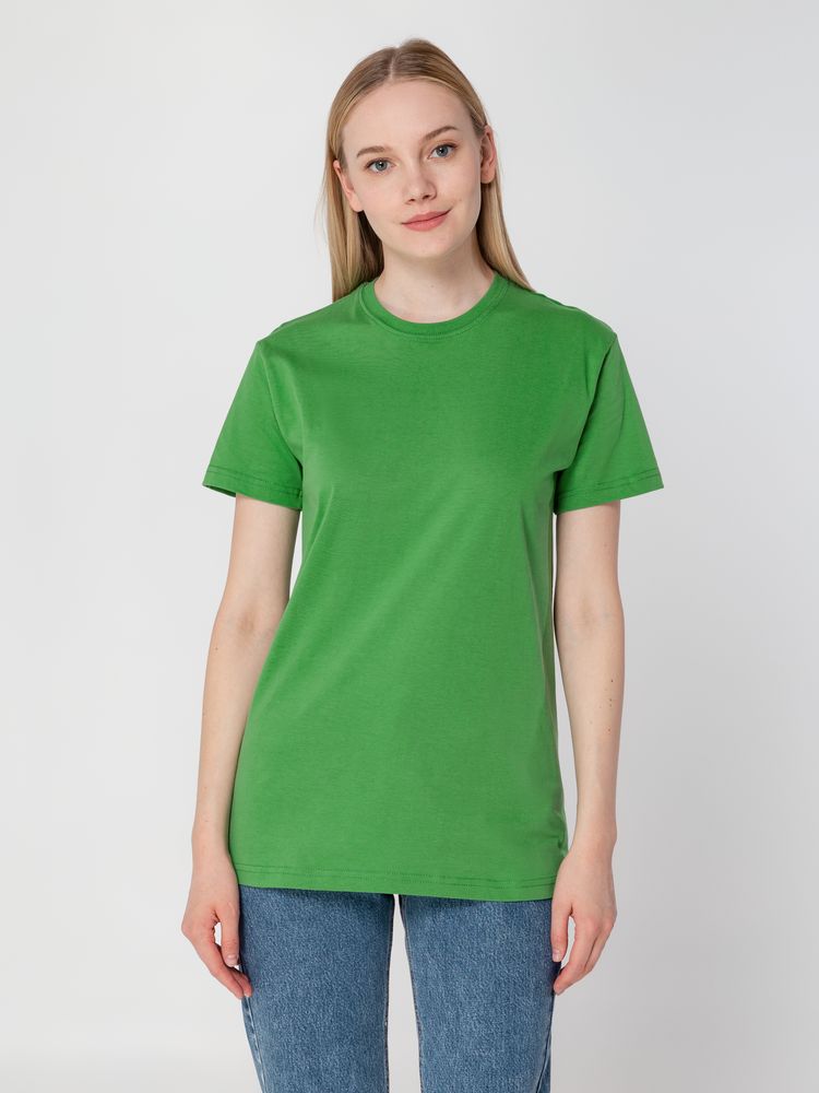 Базовая футболка унисекс прямого силуэта без боковых швов (размеры XS–4XL) или с боковыми швами (размеры 5XL–6XL).