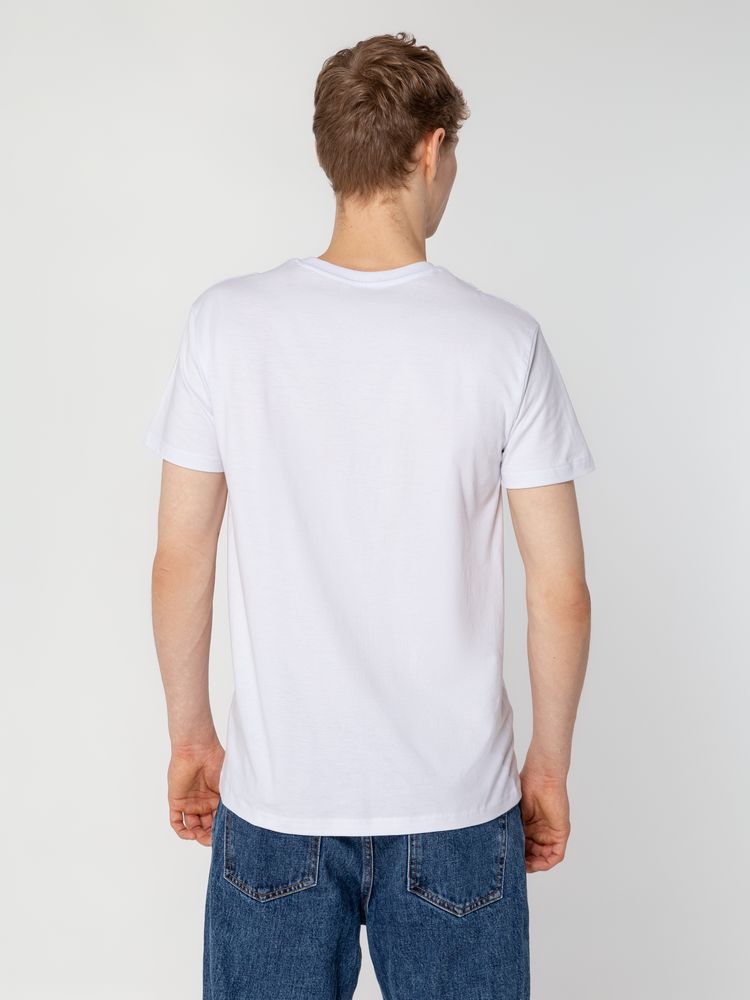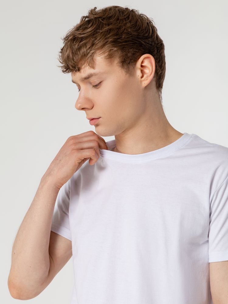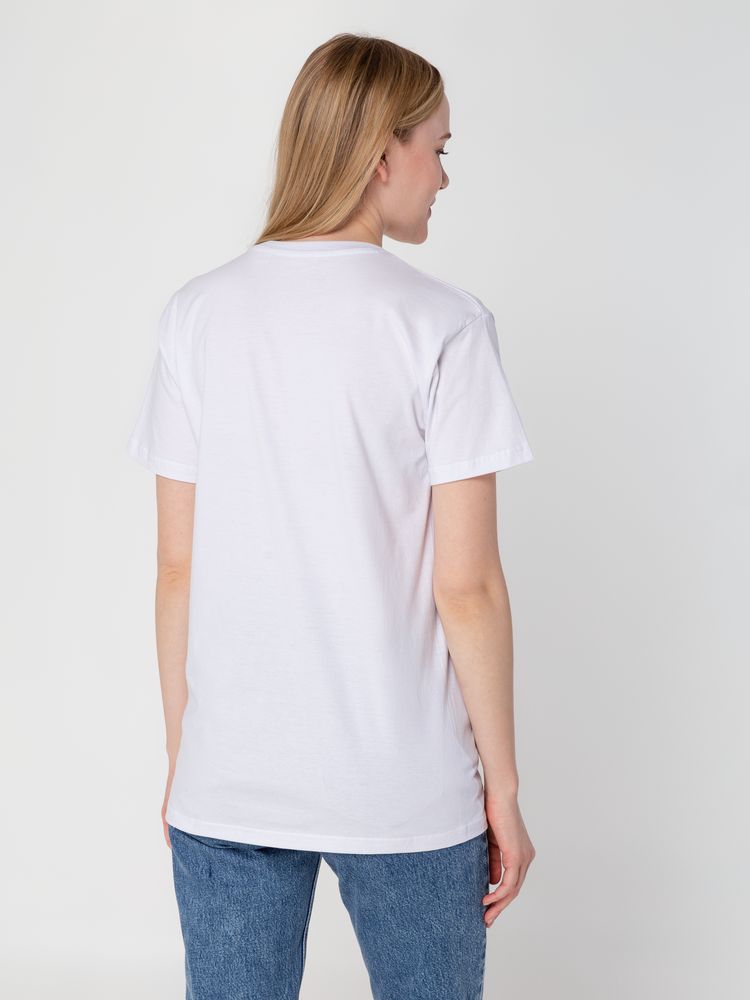 Базовая футболка унисекс прямого силуэта без боковых швов (размеры XS–4XL) или с боковыми швами (размеры 5XL–6XL).