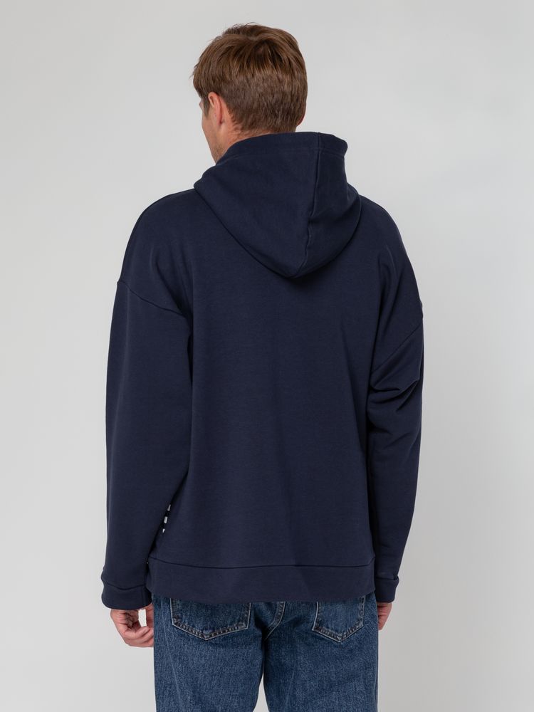 Худи унисекс в морском стиле со спущенным плечом и карманами в боковых швах.