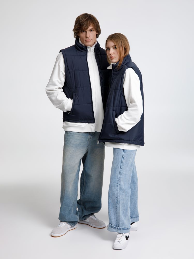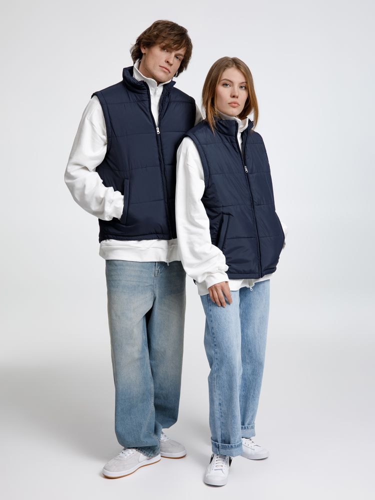Жилеты представлены в двух версиях. Версия 2 — с более гладким материалом верха. Жилеты версии 2 выделены добавлением «v2» к обозначению размера. Оттенок ткани версии 1 и версии 2 немного различается. Ближайший цвет Pantone: версия 1 — 532C, версия 2 — 533C. Рекомендуем заказать образец.