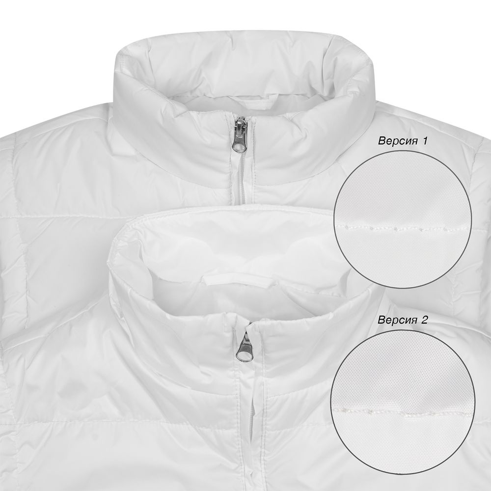 Жилеты представлены в двух версиях. Версия 1 — Произведена в Китае, с более гладким материалом верха. Информация по составу и размеру, а также рекомендации по уходу размещены на ярлыке в боковом шве. Картонная бирка с названием модели крепится на петельку для подвешивания на горловине. Жилеты версии 2 выделены добавлением «v2» к обозначению размера, произведены в России и имеют более рельефную поверхность.