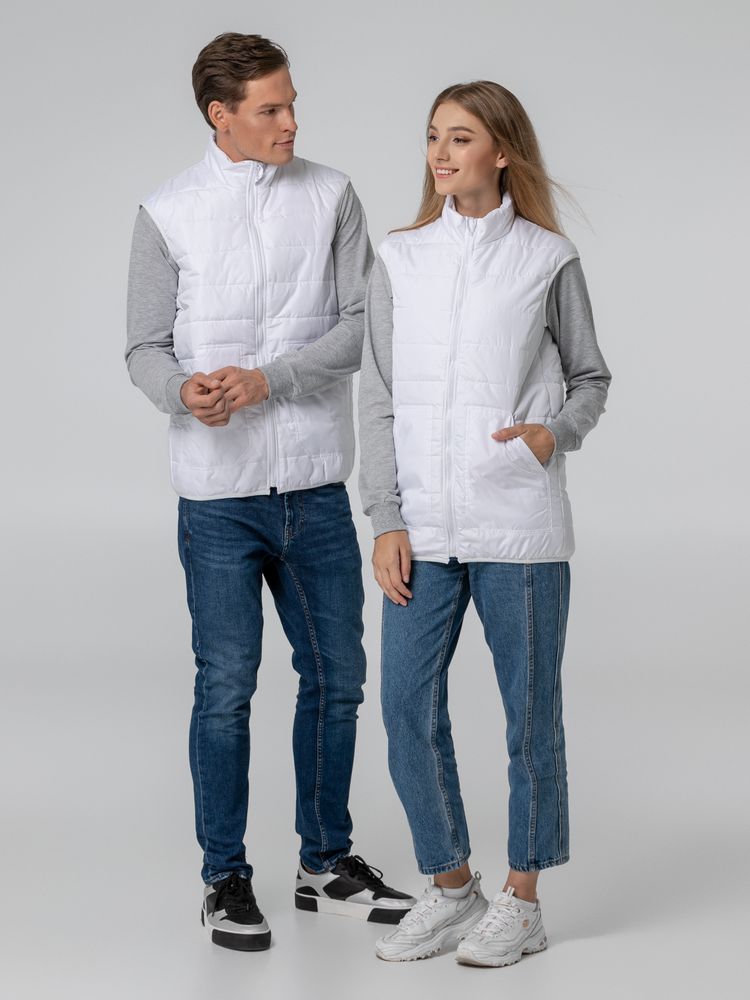 Утепленный стеганый жилет унисекс из ткани дюспо, которая считается лучшим современным материалом для изготовления курток, ветровок и плащей. Это прочный материал из полимерных волокон с защитной пропиткой, который не впитывает влагу и обеспечивает хорошую циркуляцию воздуха.