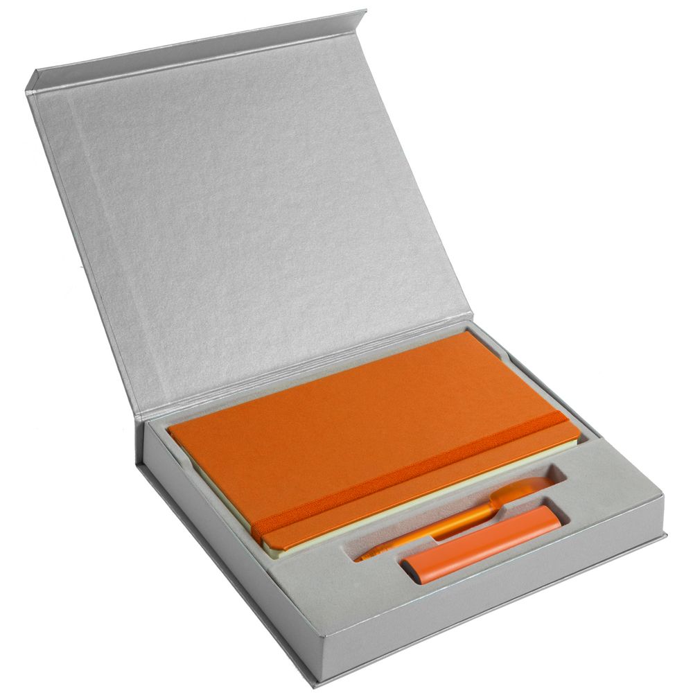 Коробка из переплетного картона, кашированного дизайнерской бумагой Majestic, с крышкой на магните и флокированным ложементом.