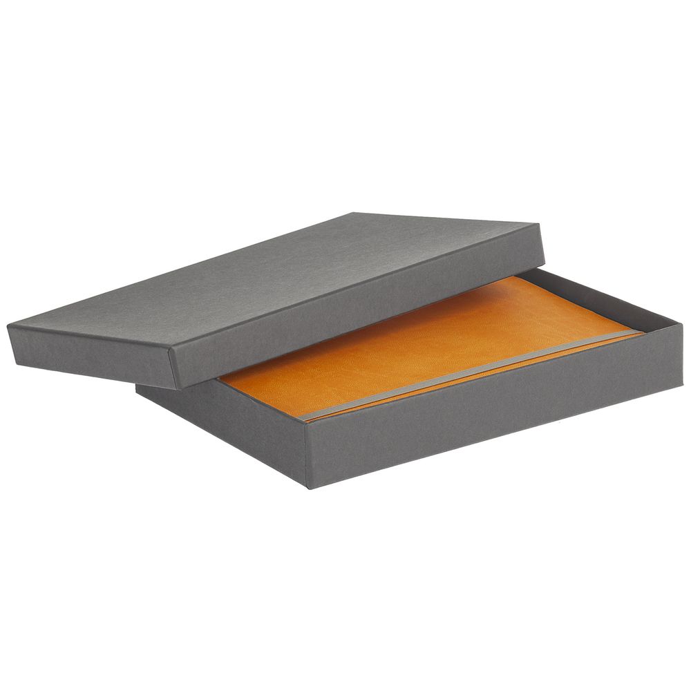 Коробка изготовлена из переплетного картона, кашированного гладкой дизайнерской бумагой Malmero.