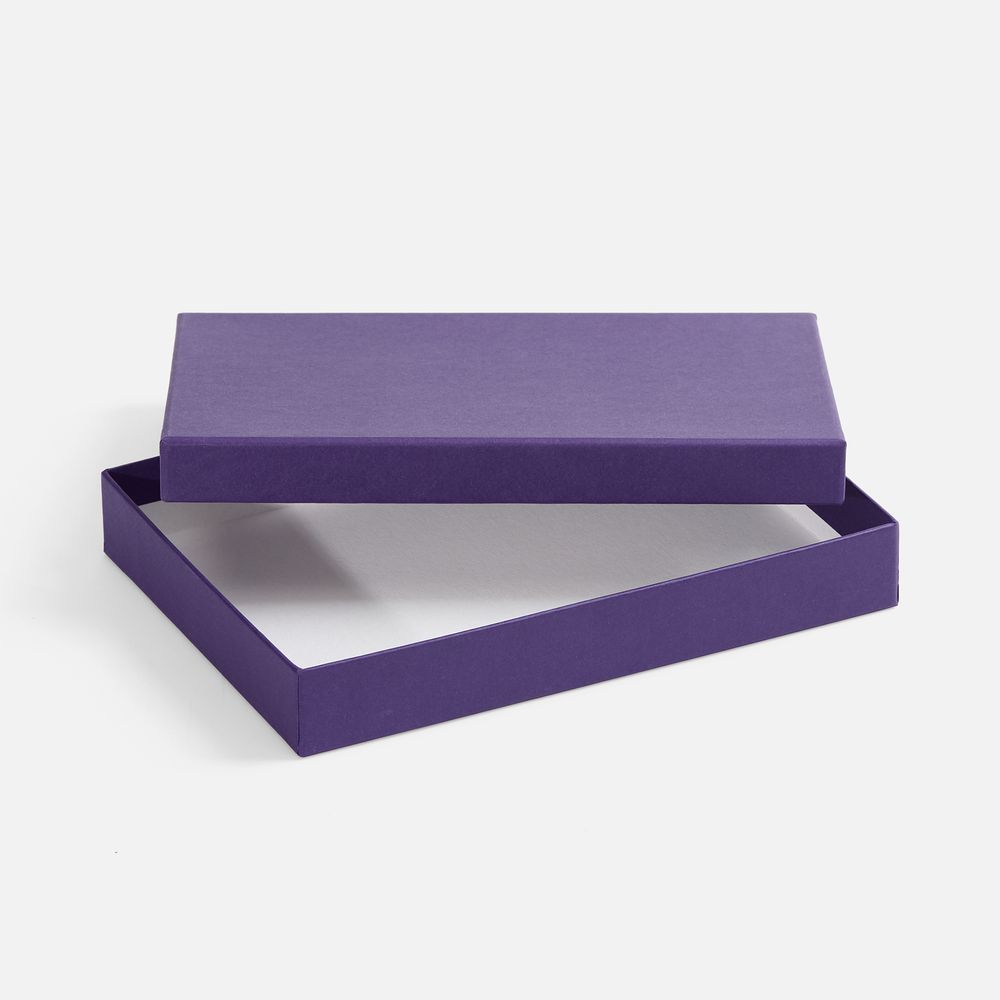 Коробка изготовлена из переплетного картона, кашированного гладкой дизайнерской бумагой Efalin.