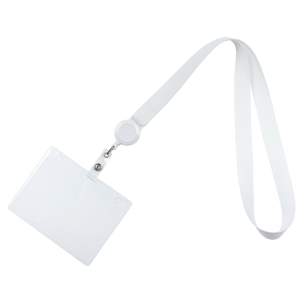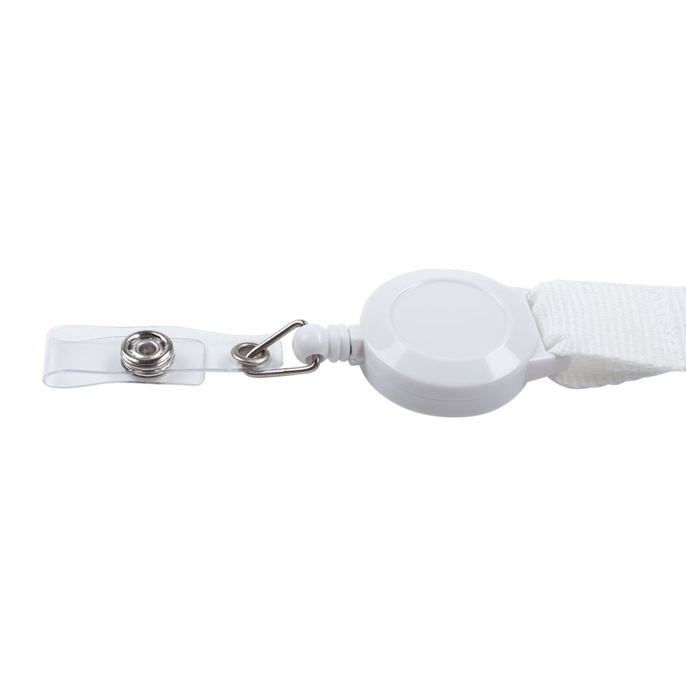 Бейдж крепится к ленте с помощью ретрактора.