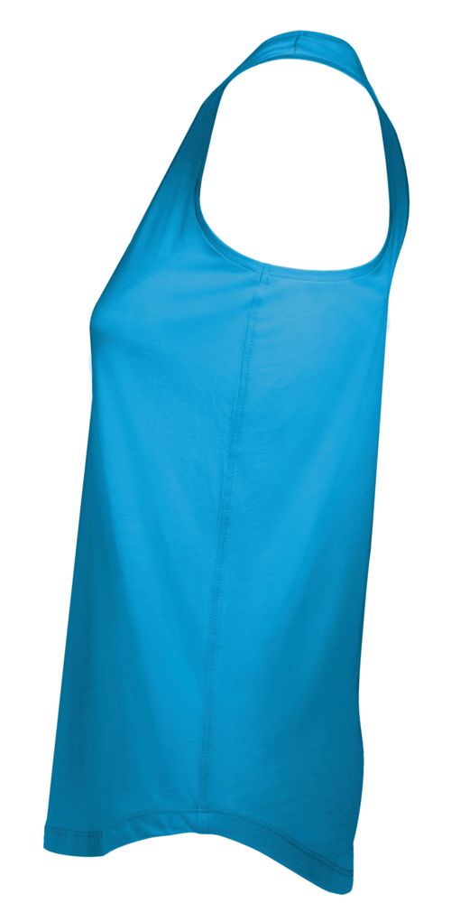 Женственная, приталенная и одновременно свободная модель. Закругленный низ изделия, глубокий вырез на спине («борцовская» спинка). Отделка выреза и пройм обтачкой из джерси. Тонкое джерси высшего качества, гребенной хлопок.