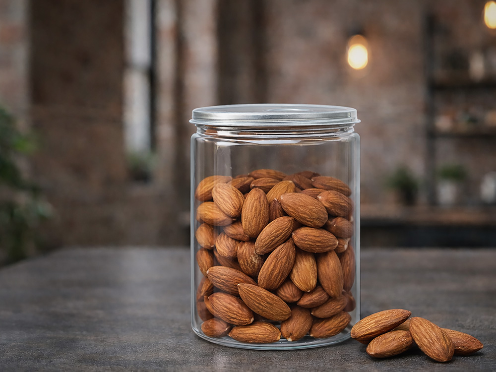 Орехи в банке — это не только вкусный и полезный перекус, но и отличное дополнение к подарку. Такой формат идеально подойдёт в качестве корпоративного сувенира: практично, эстетично и универсально для любого повода. Нежный сладковатый аромат миндаля раскрывается мягким, приятным послевкусием. Он богат питательными веществами и минералами, полезными для сердца — помогает поддерживать нормальное давление и снижать уровень холестерина. Миндаль отлично подходит для самостоятельного перекуса и ценится как источник растительного белка. Жареный миндаль гармонично дополняет блюда из мяса и птицы, овощные салаты, каши и йогурты.