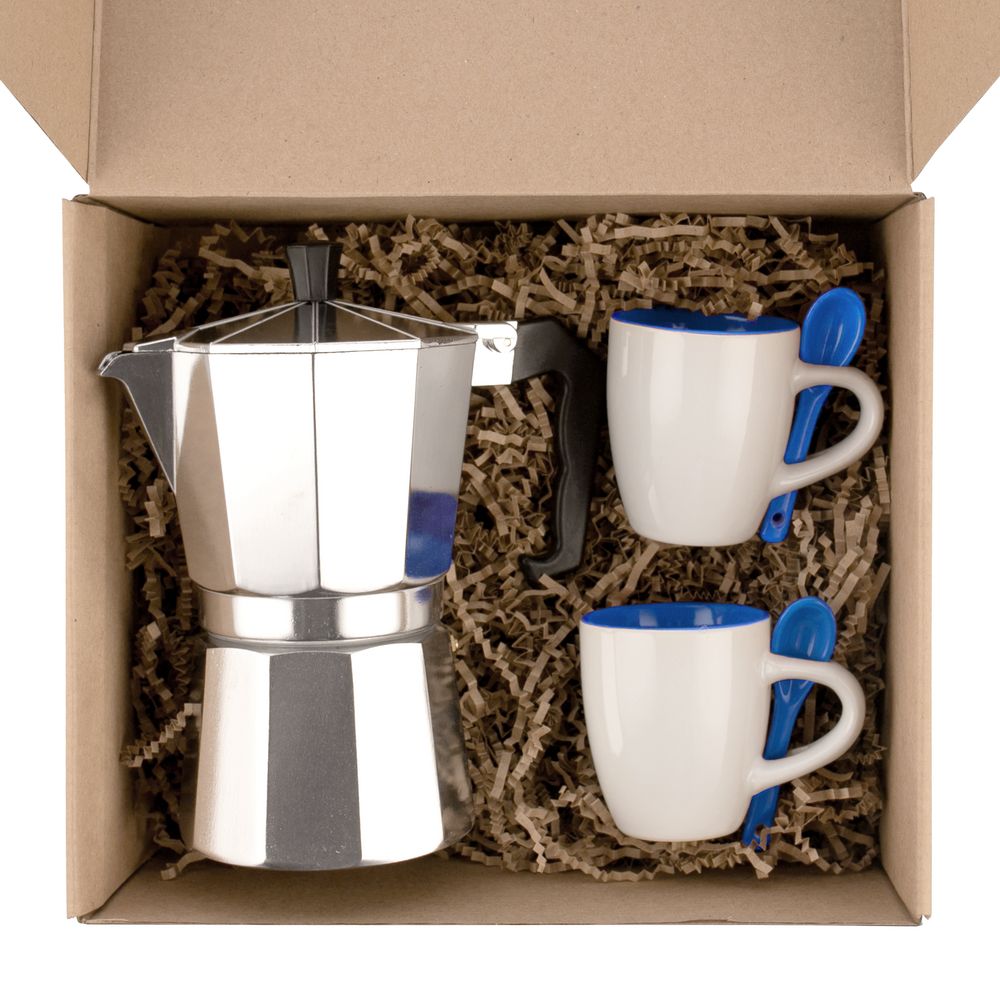 кружка: диаметр 5,8 см, высота 6,9 см; ложка: 8,5×2 см; кофеварка: высота 19 см, диаметр 10 см, ширина с ручкой 17 см; коробка 25,3х21,2х11,4 см