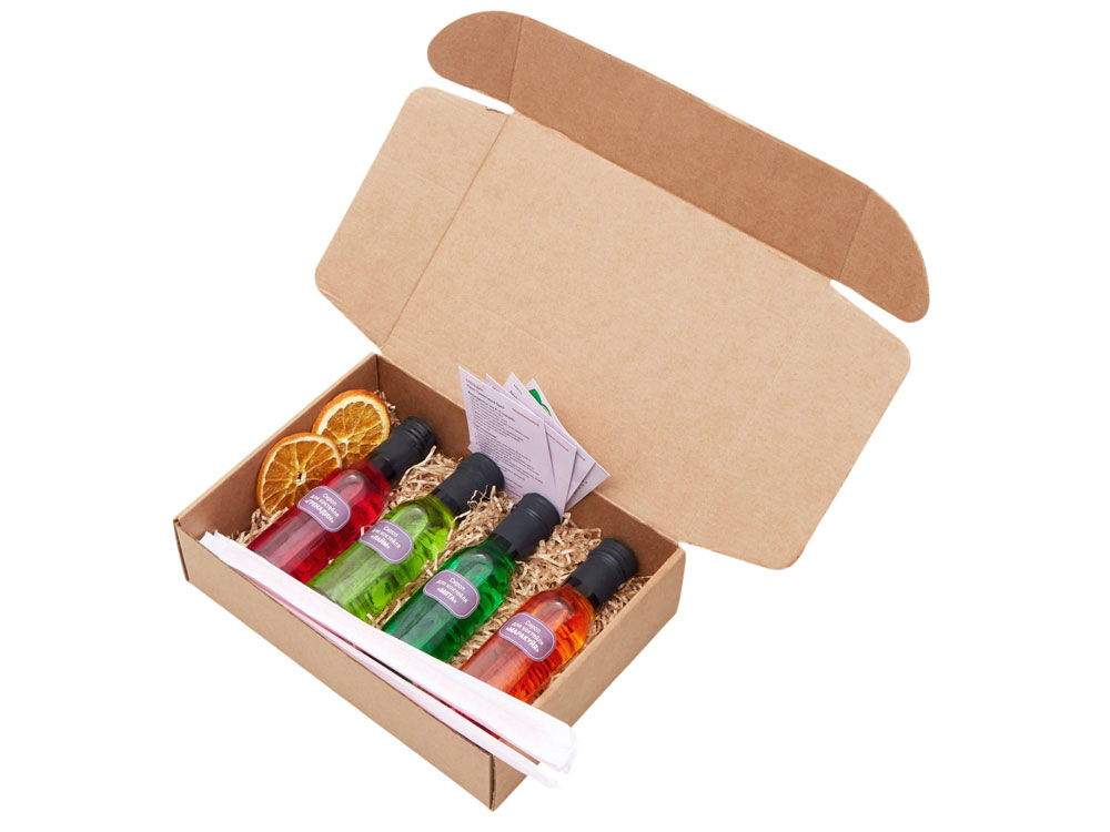 — 4 бутылочки сиропов по 100 мл с яркими вкусами: Лайм, Маракуйя, Мята, Гренадин – классика коктейльного бармена.