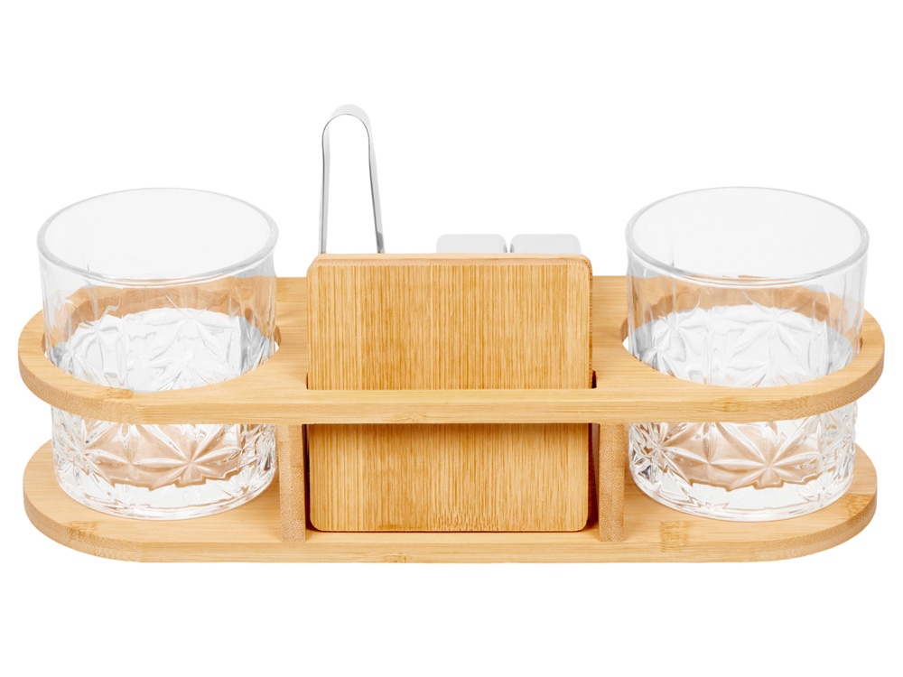 Подставки для бокалов (2 шт.) — костеры из бамбука защитят стол и дно бокалов от царапин и капель напитка, обеспечив бесшумность при использовании.
