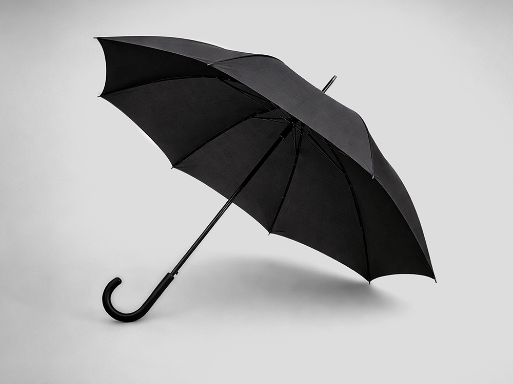 Классический зонт-трость имеет купол из эпонжа плотностью 190T. Металлическая ось дополнена прочными и легкими спицами из файбергласса.