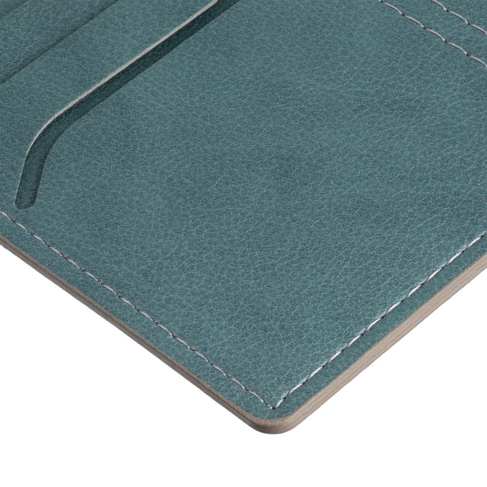 Обложка выполнена из материала Petrus, голубой JJ. Срез обложки окрашен в серый цвет.