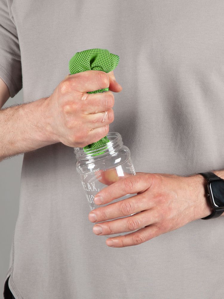 Для получения охлаждающего эффекта намочите полотенце, отожмите излишки воды и встряхните. Положите полотенце на шею, лоб или запястье, убедившись, что ткань покрывает кожу. Влага, испаряясь из полотенца, оказывает охлаждающее воздействие на кожу, обеспечивая мгновенное облегчение.