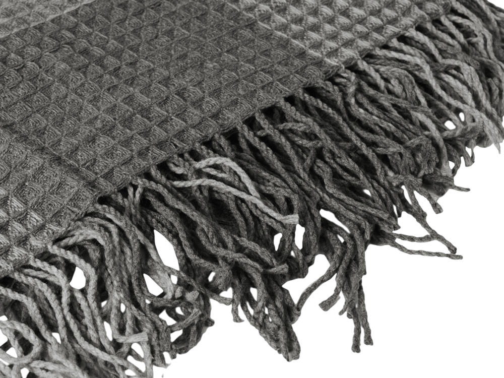 Теплый плотный плед из акрила, украшенный бахромой, имеет приятную на ощупь текстуру поверхности и создает атмосферу комфорта и уюта.