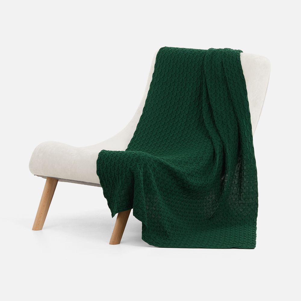 Глубина рельефного орнамента добавляет динамику даже в монохромном исполнении. Плед Braidera — удачное сочетание декоративной выразительности и уютной функциональности.