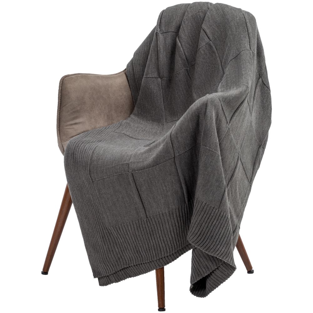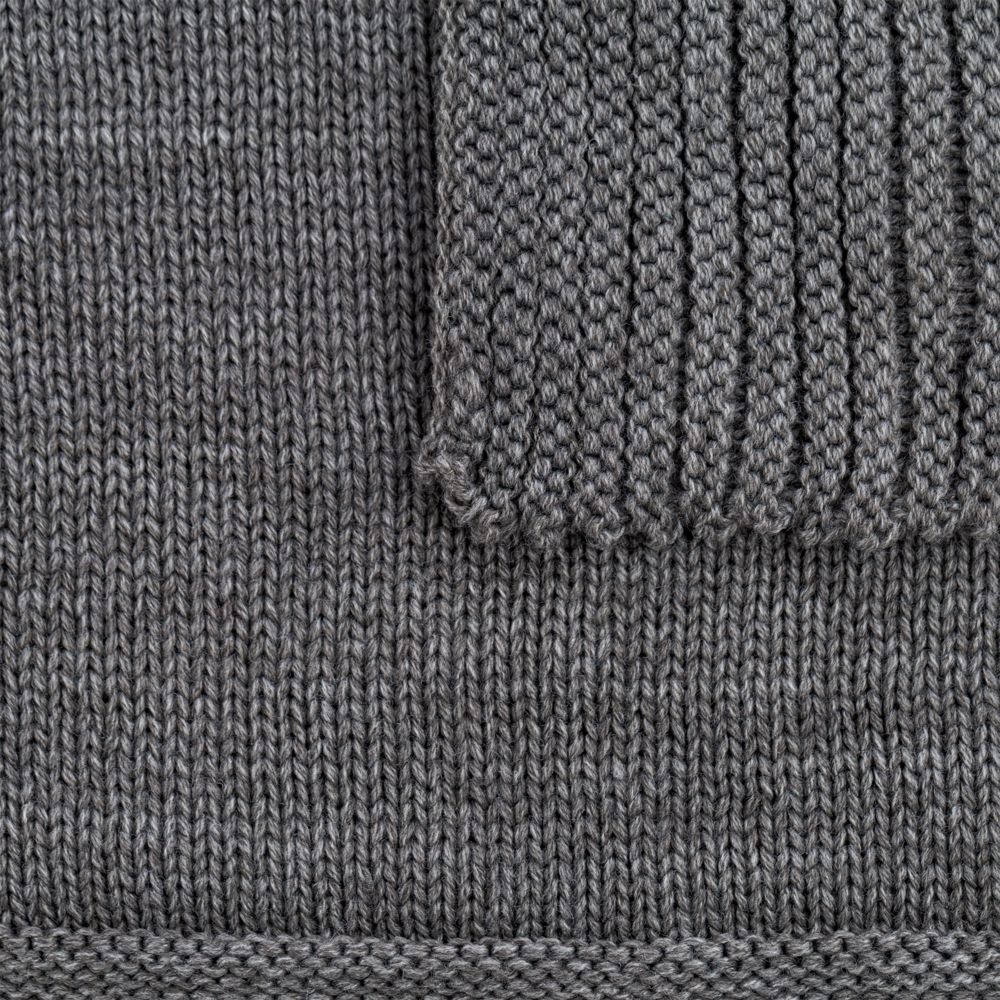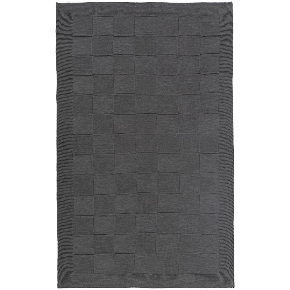 Однотонный плед рельефной вязки «в клеточку» с широким кантом, выполненным резинкой.