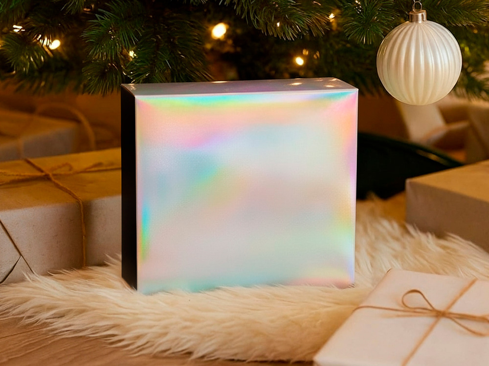 Упаковка — это первое впечатление о подарке. В преддверии Нового года особенно важно создать атмосферу праздника — стильная и аккуратно выполненная коробка с голографическим шубером сразу вызывает ощущение заботы, уюта и волшебного ожидания.