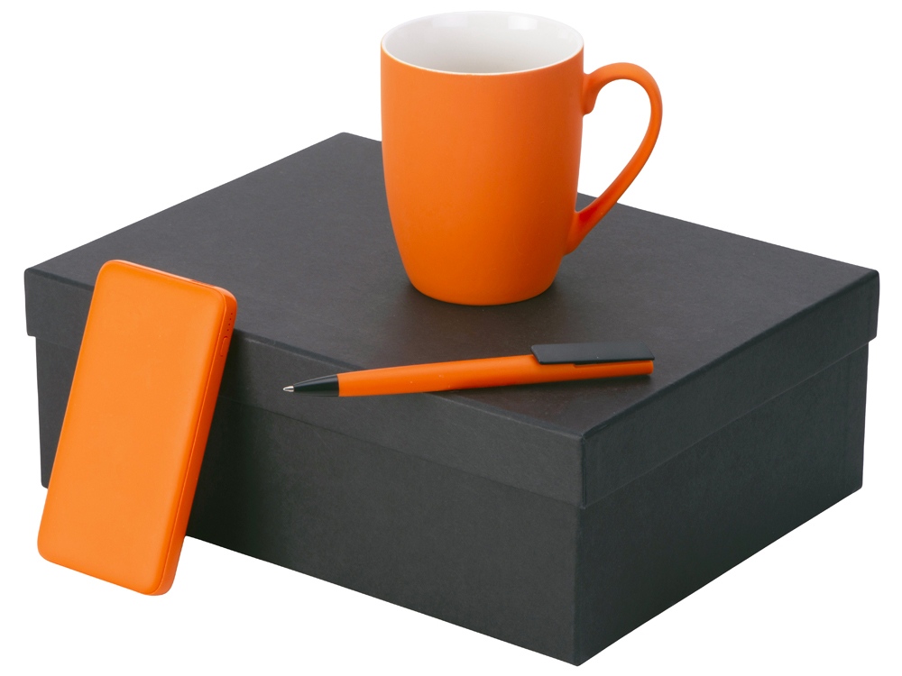 кружка — фарфор с покрытием soft-touch, повербанк — пластик с покрытием soft-touch, ручка — пластик с покрытием soft-touch.