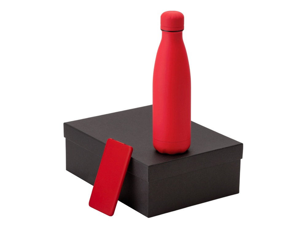 повербанк- пластик с покрытием soft-touch, термобутылка- нержавеющая cталь с покрытием soft-touch