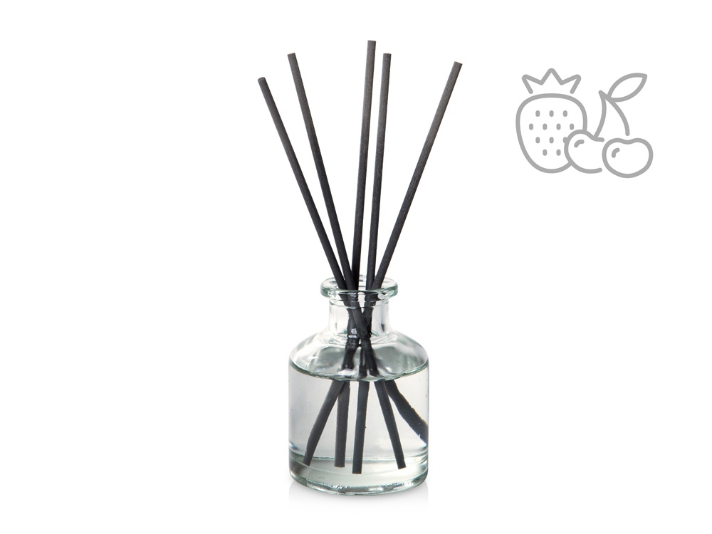 Аромадиффузор имеет мягкий и сладкий аромат, который мысленно перенесёт вас во фруктовый сад. Насыщенность аромата регулируется количеством используемых фибровых палочек.