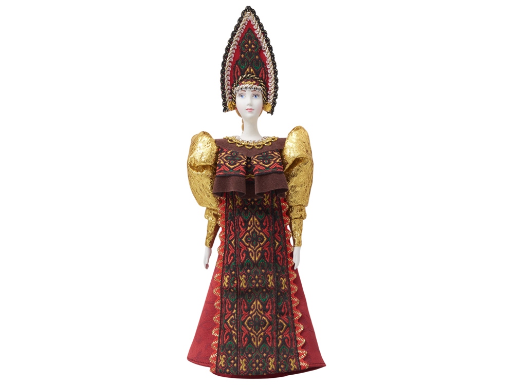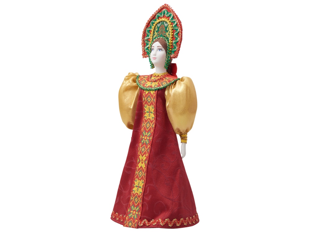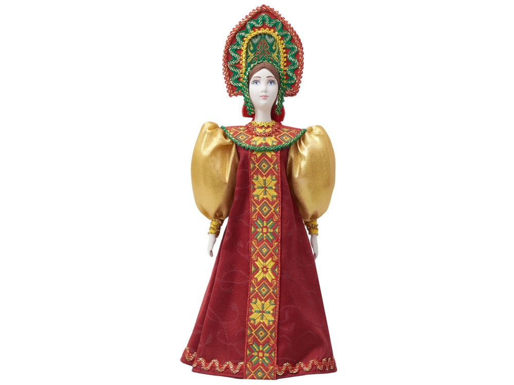 — Фарфоровая кукла в народном костюме ручной работы: расписной сарафан и кокошник с традиционной вышивкой воссоздают образ русской красавицы.